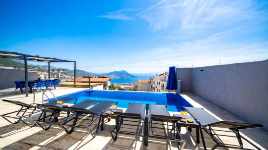 Villa Serüven, Kalkan Akbel bölgesinde konumlanan deniz manzaralı 8 kişilik bir tatil villasıdır. Villamızın korunaklı özel havuzu ve verandası bulunur. Etrafı korunaklı olduğundan, muhafazakar tatil için idealdir. Geniş ailelerin veya arkadaş gruplarının rahatlıkla konaklayabileceği villamızda 4 yatak odası bulunmaktadır. Ayrıca ebeveyn odasında jakuzi yer almaktadır.