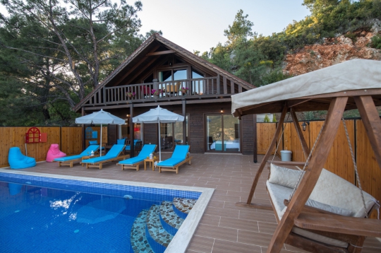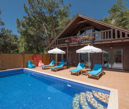 Özel havuzlu ve etrafı kapalı bir şekilde tasarlanan kiralık yazlığımız özellikle balayı çiftlerimiz ve muhafazakar ailelerimizin memnuniyeti için ön plandadır.