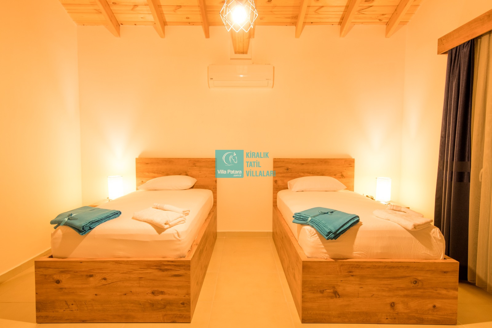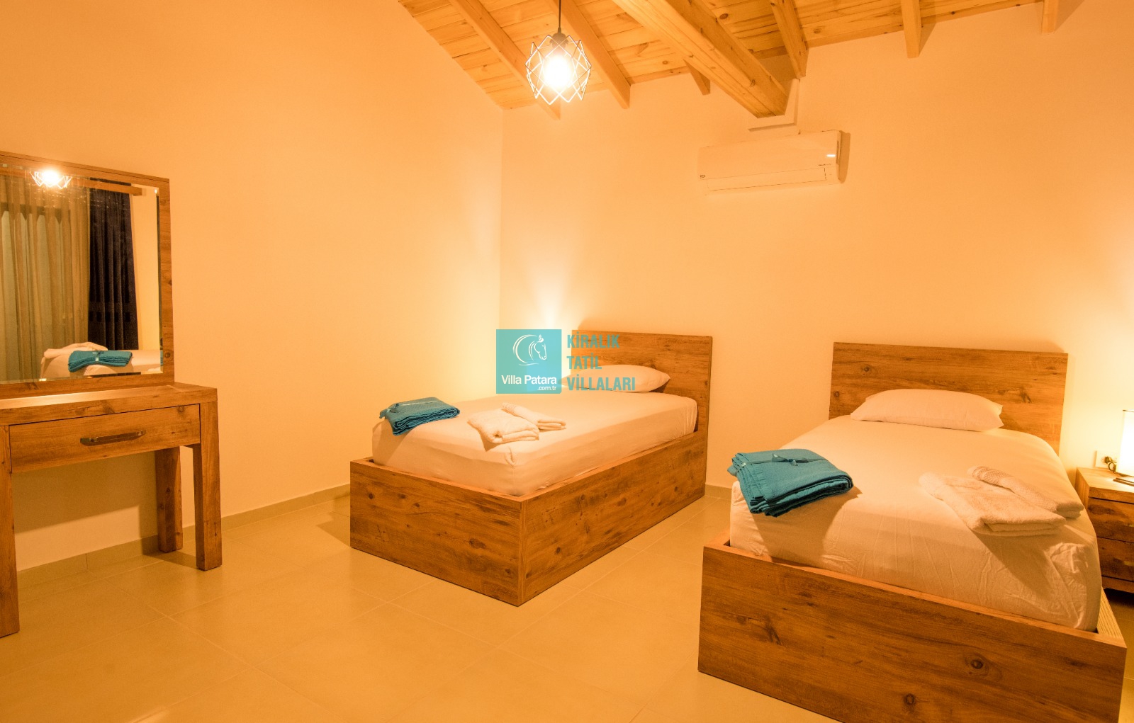 2.Yatak Odası: 2 adet tek kişilik yatak, klima, komodin, elbise dolabı, makyaj masası bulunmaktadır.