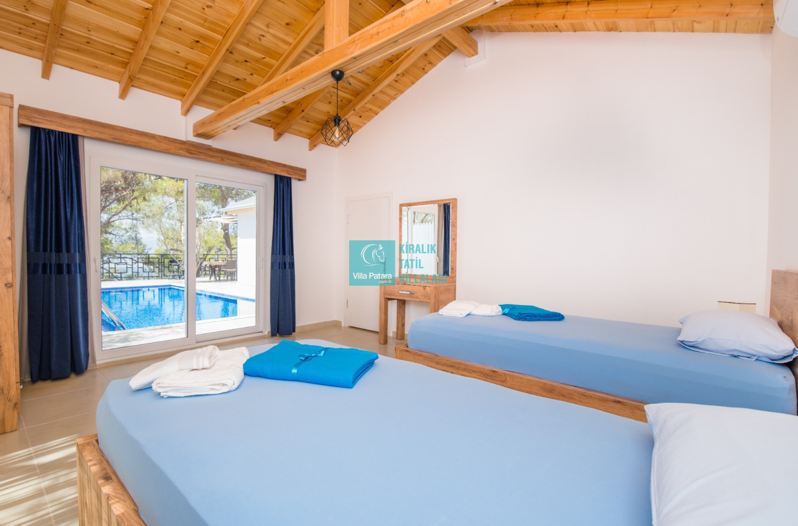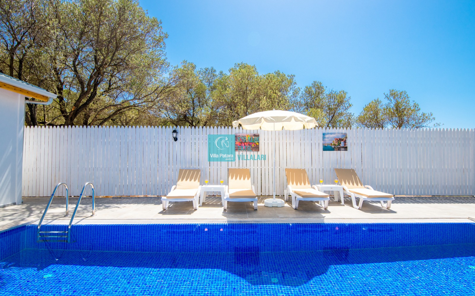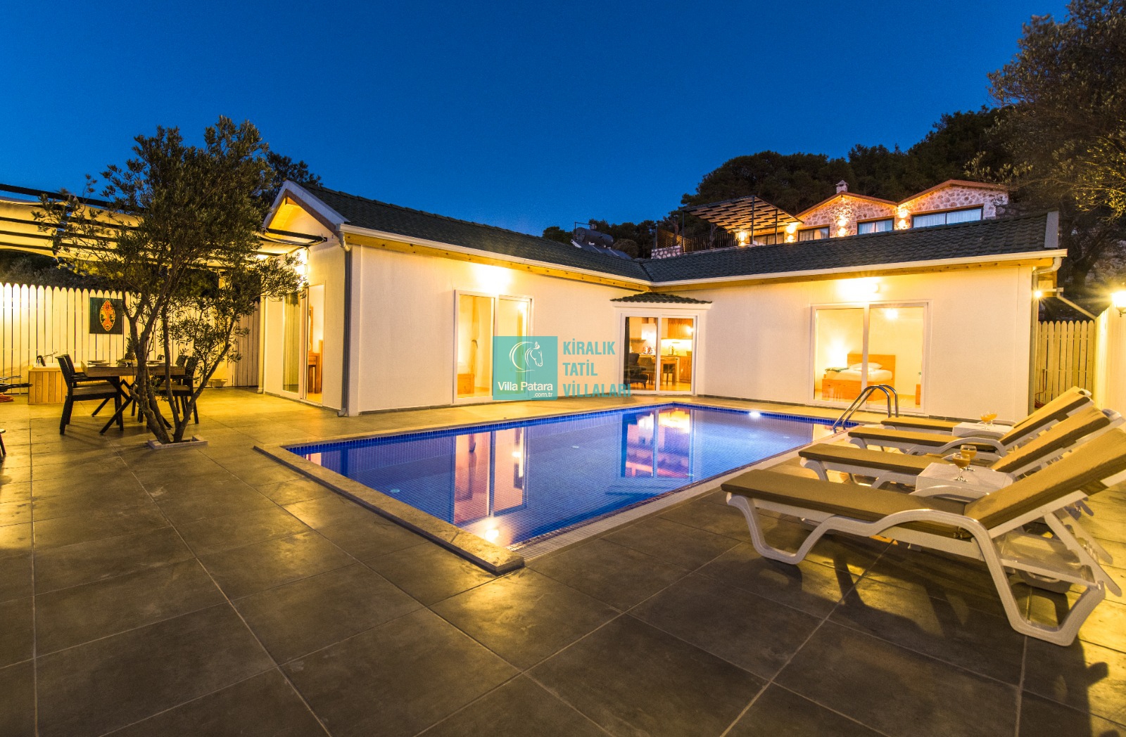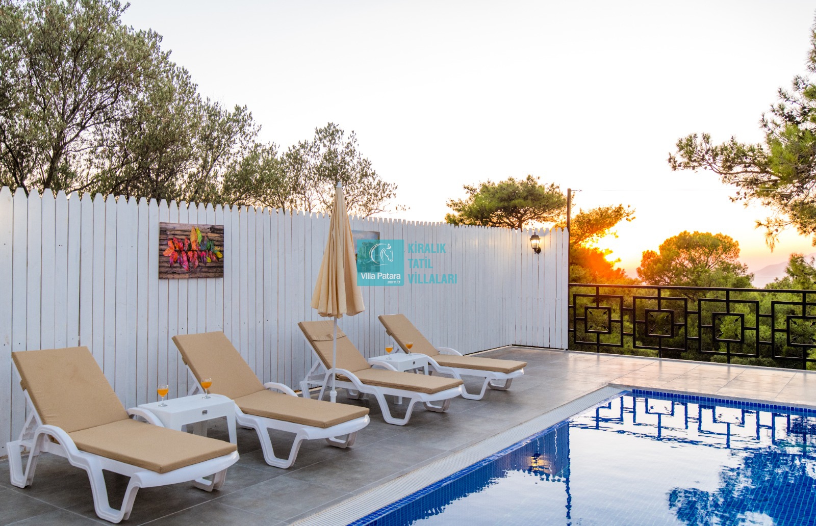 Kalkan Patara mevkiinde Bulunan kiralık villamız Shocking blue 2 yatak odalı olup 4 kişilik konaklama kapasitesine Sahiptir. Yazlık villamız balayı çiftlerimize ya da çocuklu ailelerimize uygun şekilde dizayn edilmiştir. Muhafazakar ve balayı villaları kategorisinde yer alan villamız Patara merkeze yakın konumda yer almakta olup, dünyaca ünlü Patara Plajına ise araba ile 10 dk sürüş mesafesindedir. Havuzu korunaklı ve bahçesi dışarıdan görünmeyen Villamızın havuz terasında bulunan perdeleme sistemi sayesinde mahremiyete önem veren misafirlerimiz için huzur dolu bir tatil fırsatı sunuyor.