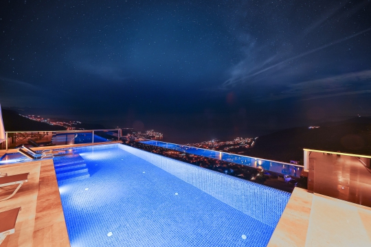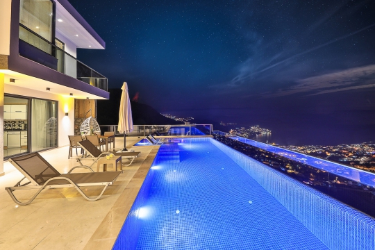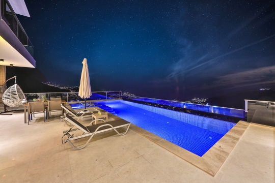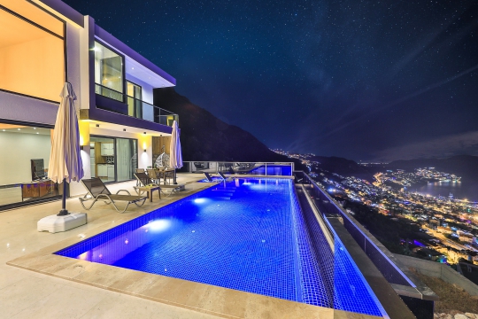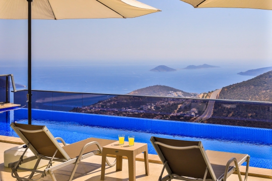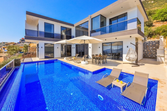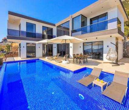 Villa Sidre, Kalkan Akbel bölgesinde bulunan 2 yatak odalı ve 4 kişi konaklama kapasiteli villa seçeneklerimizdendir. Ana yatak odasında çift kişilik yatak ve jakuzi, ikinci yatak odasında ise iki adet tek kişilik yatak ve jakuziye sahiptir. Ek olarak villamızda kullanabileceğiniz sauna da mevcuttur. Havuz terasında yemek masası, bahçe salıncak, şezlong ve şemsiye ile birlikte özel yüzme havuzu mevcuttur. Villamız balayı çiftleri ve çekirdek aileler için de idealdir. Muhteşem deniz manzarası ile birlikte içinizi ısıtacak bir tatil imkanı sunan villamız merkeze de yakın konumdadır.