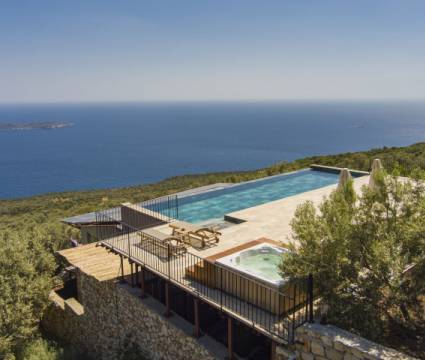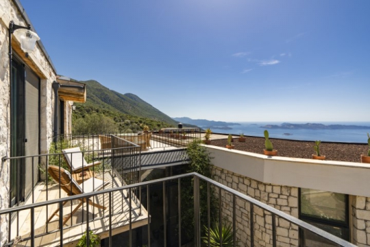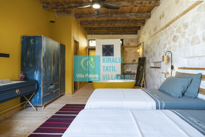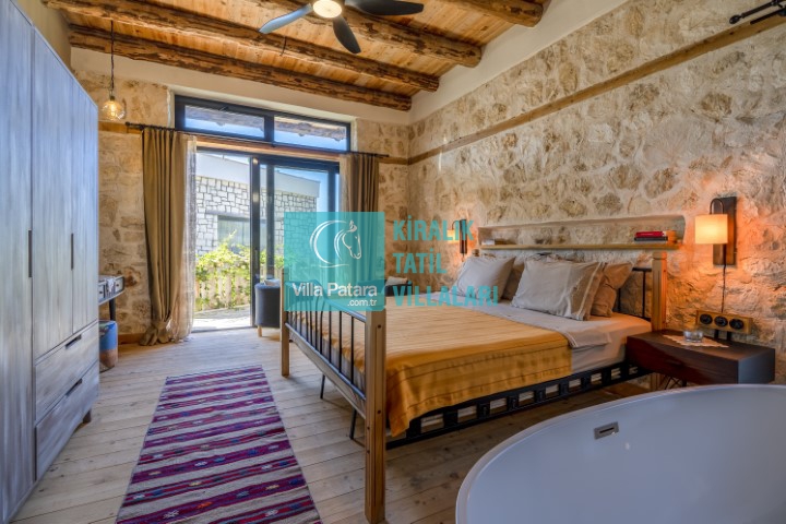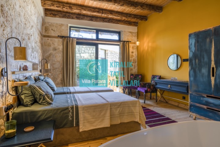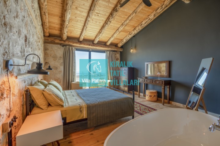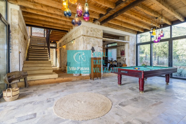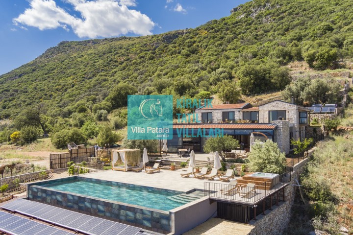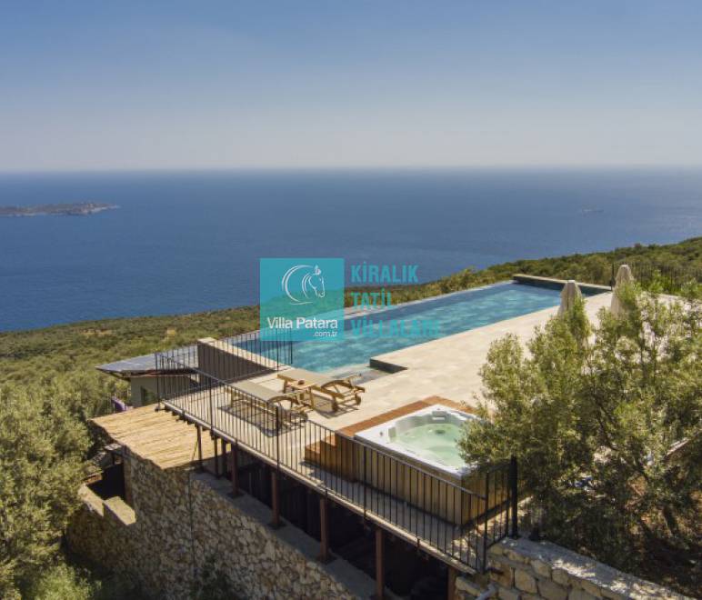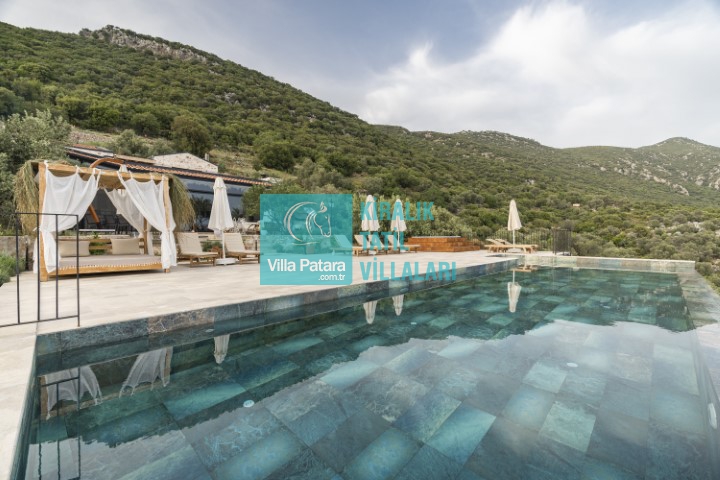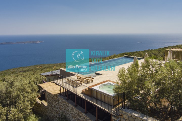 Villanın terası, balkonları ve çatı katı ise gün doğumundan gün batımına, her anı ölümsüzleştirecek manzaralarla bezeli. Özellikle Meis Adası’nın mavi silueti ve Kaş Yarımadası’nın eşsiz görüntüsü, arkadaş sohbetlerine ya da romantik akşamlara görkem katıyor. Kapıları doğanın içinde özgürce açılan bu villada, 15 metrelik geniş tuzlu su havuzu da serinlemek ve eğlenmek için ideal bir alan sunuyor.