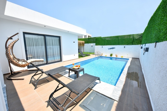 Fethiye Merkez’de bulunan Villa Sitrin 1, balayı tatilleri için mükemmel bir seçenek olan lüks bir kiralık tatil villasıdır. Bu özel villa, tatilinizde size unutulmaz bir deneyim sunmak için özenle tasarlanmıştır. NOT: Bu özel villamızdan siz bütün değerli konuklarımız faydalanabilsin diye tam 2 adet mevcuttur. Yan yana olan bu villaları takvimin uygunluk durumuna göre sevdiklerinizle beraber kiralayabilir ve hep birlikte özel bir tatil yaşayabilirsiniz. Fethiye Merkez’de bulunan Villa Sitrin 1'in en göze çarpan özelliği, korunaklı bir havuza sahip olmasıdır. Bu özel havuz, size gizlilik ve rahatlık sunarak keyifli bir yüzme deneyimi yaşamanızı sağlar. Bahçe oturma alanında ise huzur dolu anlarınızı geçirebilirsiniz. Balayı tatilleri için ideal olan Villa Sitrin 1, romantik bir atmosfer sunar. Bu lüks villa, tatil villaları arasında özel bir konuma sahiptir ve size unutulmaz anılar biriktirmeniz için en iyi olanakları sunar. Garanti Villam'ın güvencesiyle sunulan Villa Sitrin 1, Fethiye'de kiralık villa tatillerinin en iyilerinden biridir. Bu villa, size konforlu ve rahat bir konaklama deneyimi sunarken aynı zamanda istediğiniz özel anları yaşamanızı sağlar. Villa Sitrin 1, Fethiye'deki kiralık villa seçenekleri arasında öne çıkan bir tercihtir. Bu lüks villa, balayı tatilleri için romantik bir kaçamak yapmak isteyen çiftlere mükemmel bir konaklama sunar.