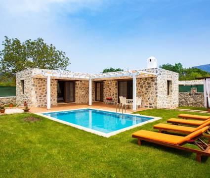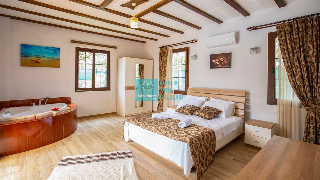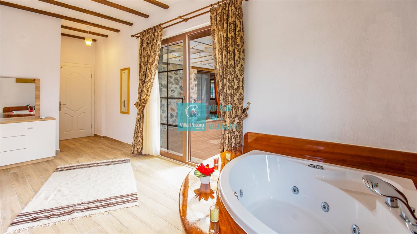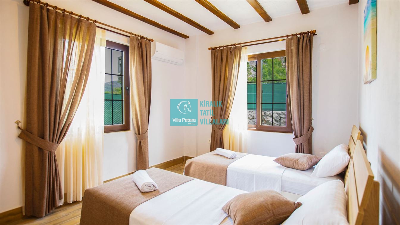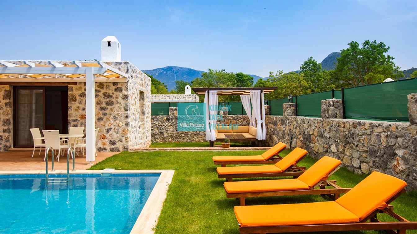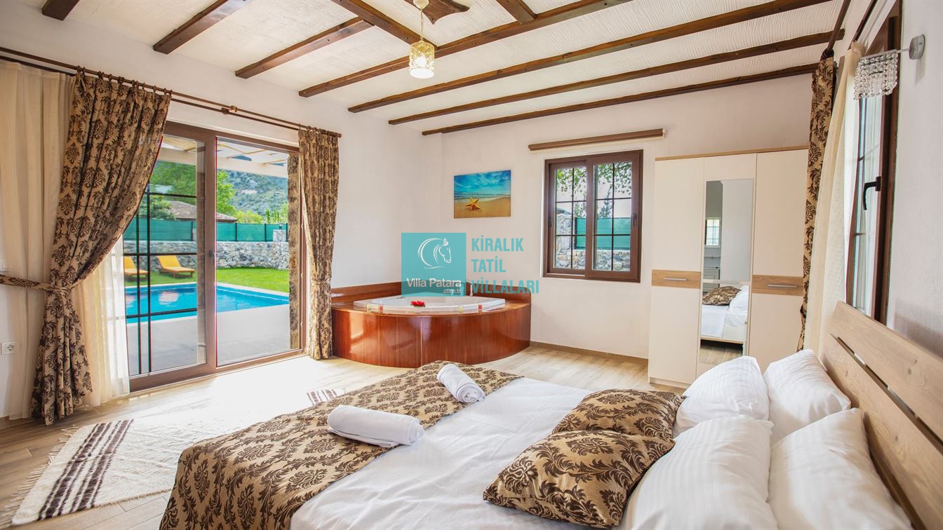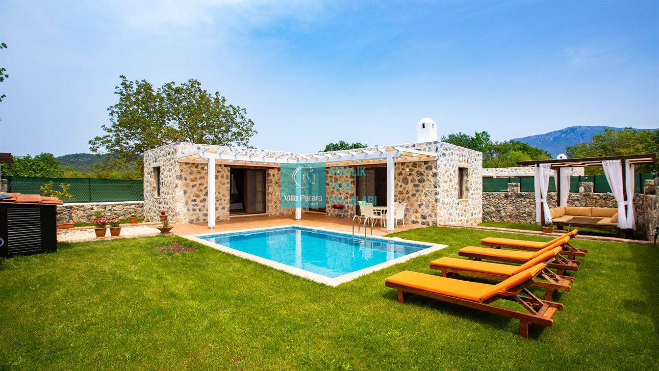 Villa Somyürek 1 Tarihi rum evlerinin bulunduğu tarihi ve turistik bir köy olan Fethiye Kayaköy’de yer almaktadır. 2 adet yatak odasına sahip, muhafazakar ailelere ve balayı çiftlerine uygun tam korunaklı bir tatil villasıdır. Yatak odalarından biri jakuzili ve banyolu, ikinci yatak odası 2 adet tek kişilik yataklıdır ve banyosu odanın yan tarafındadır. Salonunda açık mutfağı bulunmakta ve hem salondan hem de ana yatak odasından havuza direk çıkış bulunmaktadır.