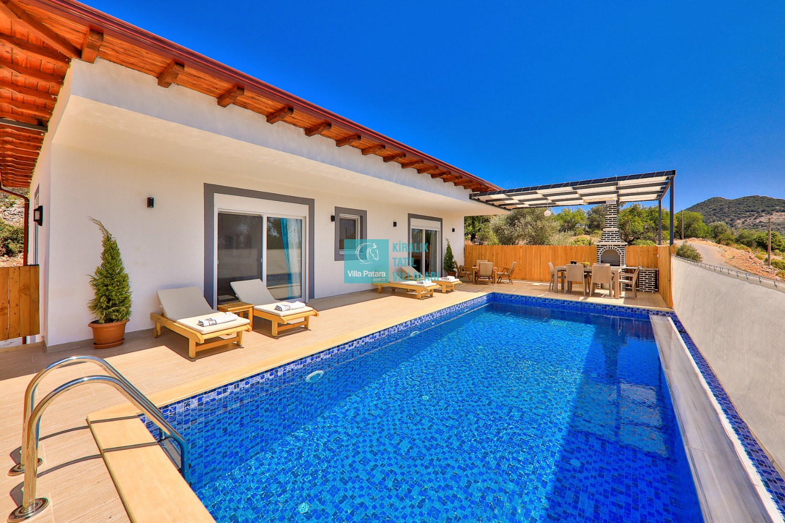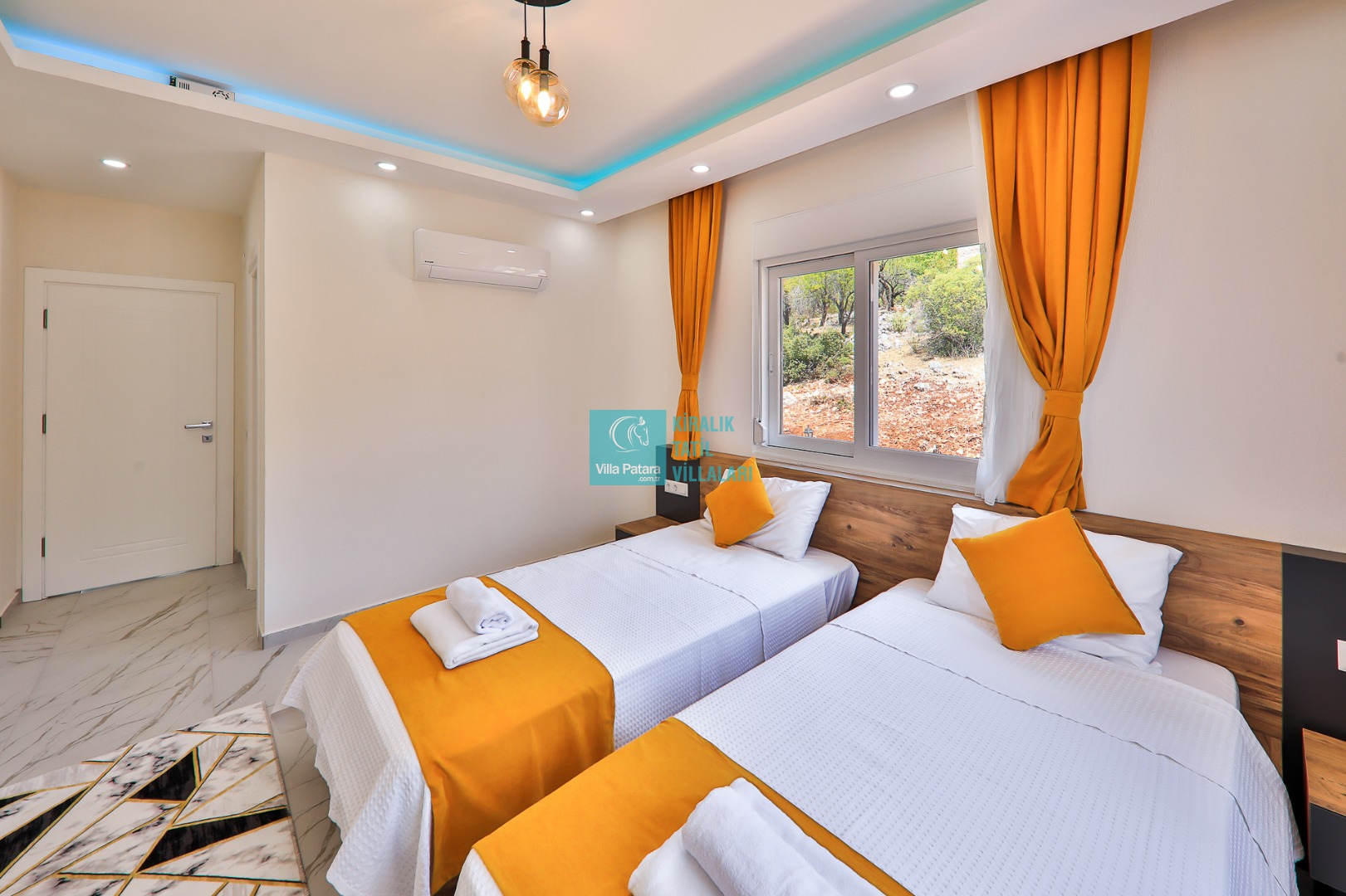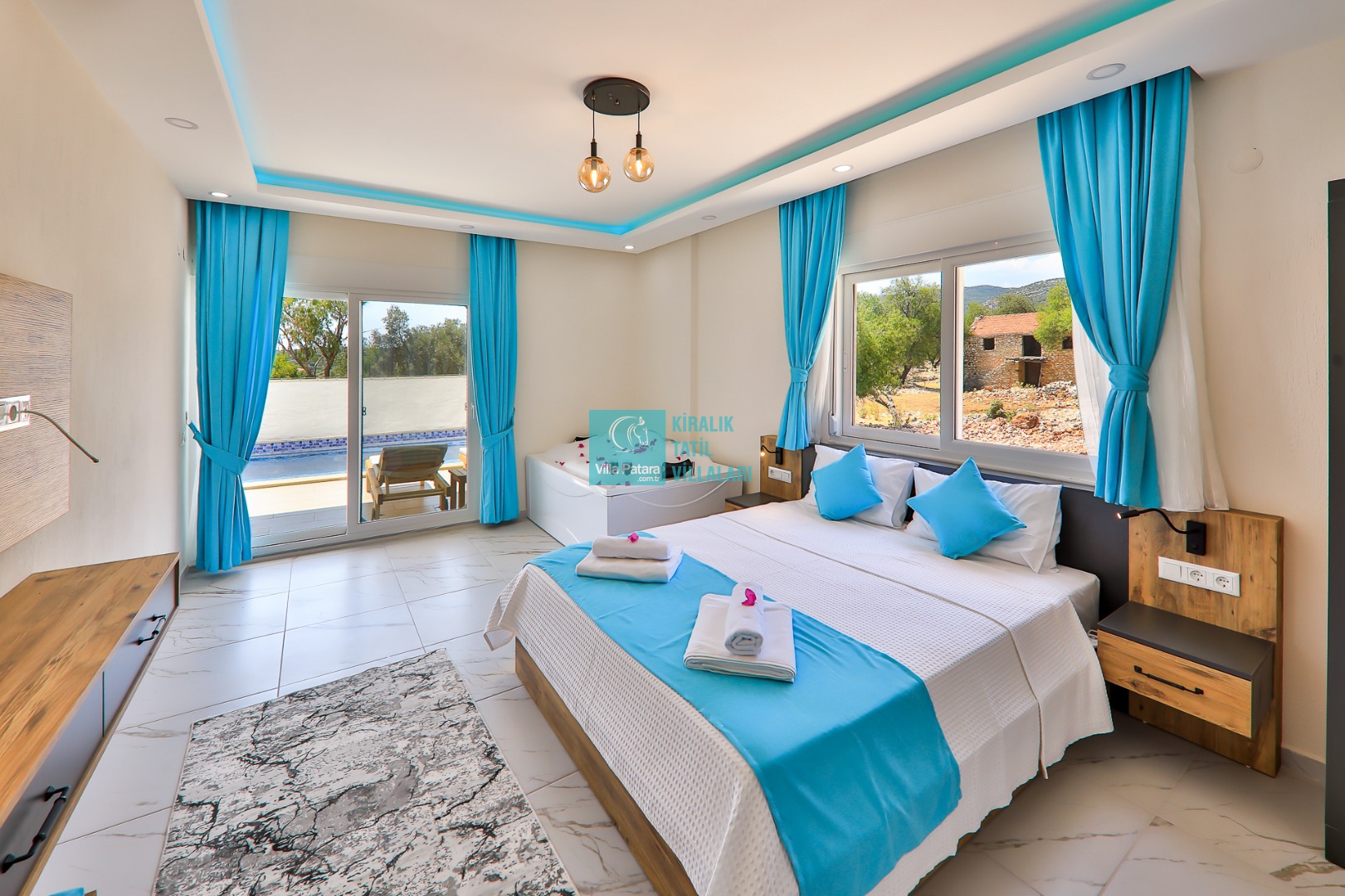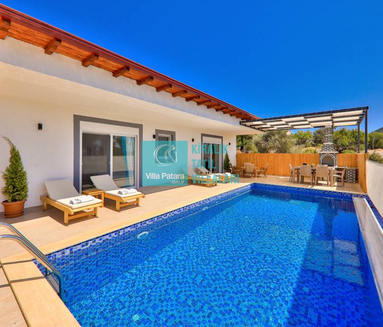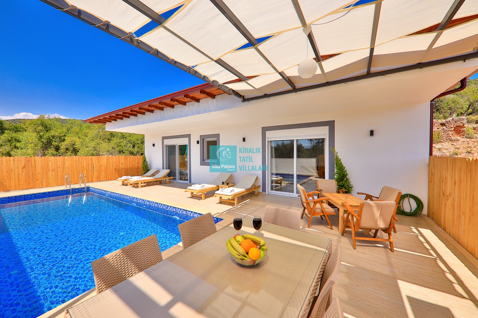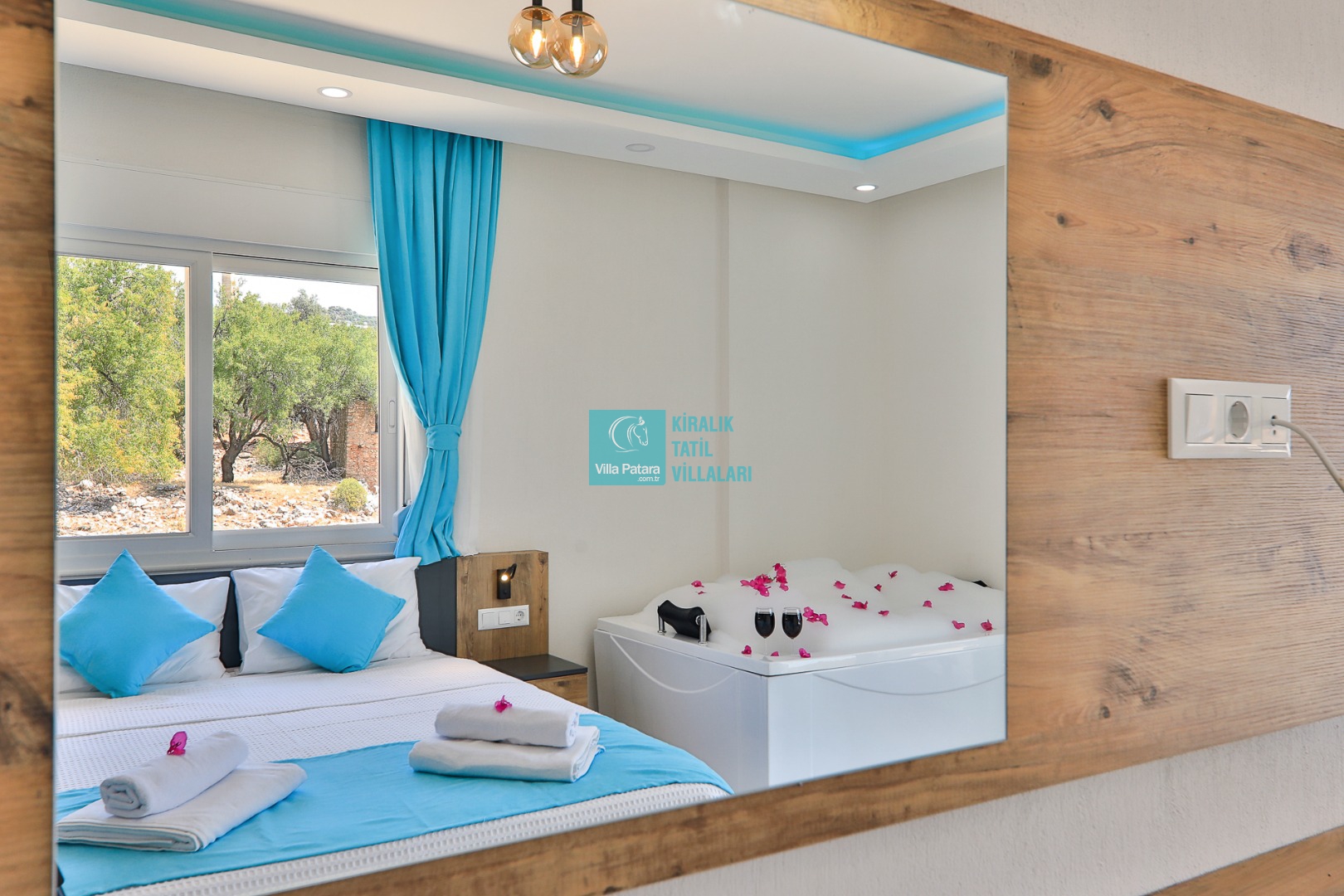 Antalya Kaş Bayındır Mahallesi’nde konumlu Villa Sönmez, 2 suit yatak odalı, 4 kişi kapasiteli, jakuzili, korunaklı tatil villasıdır.