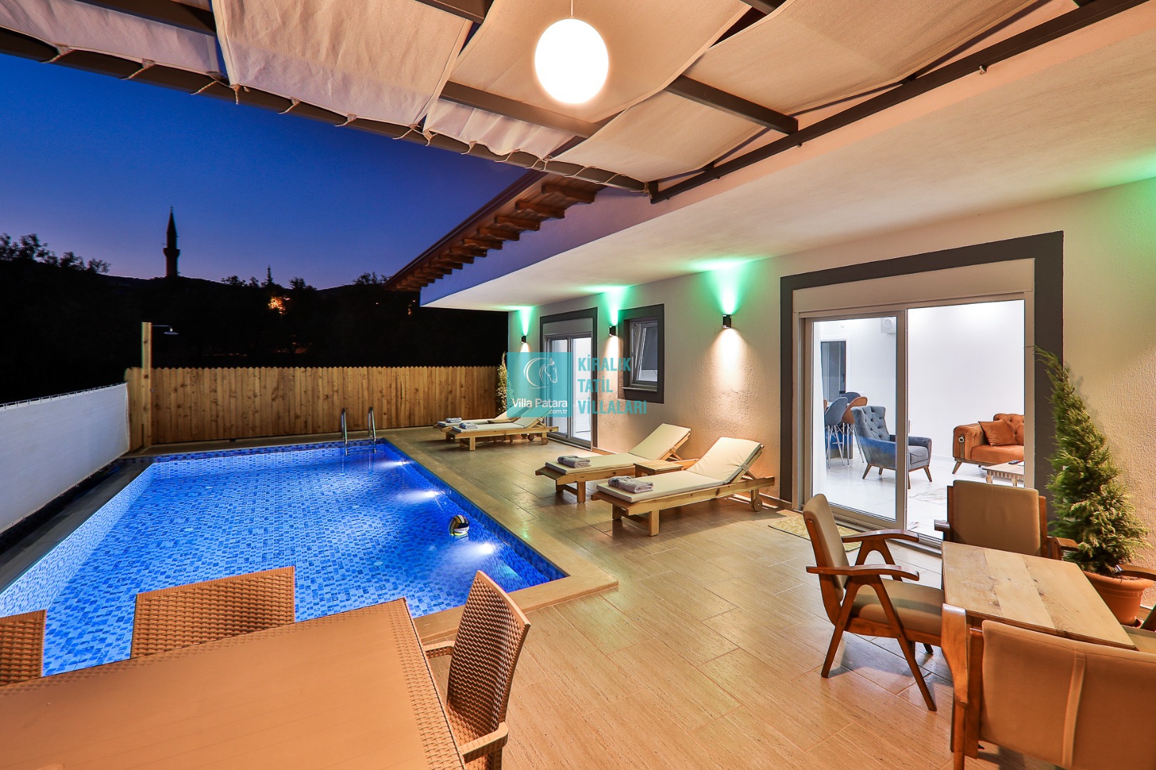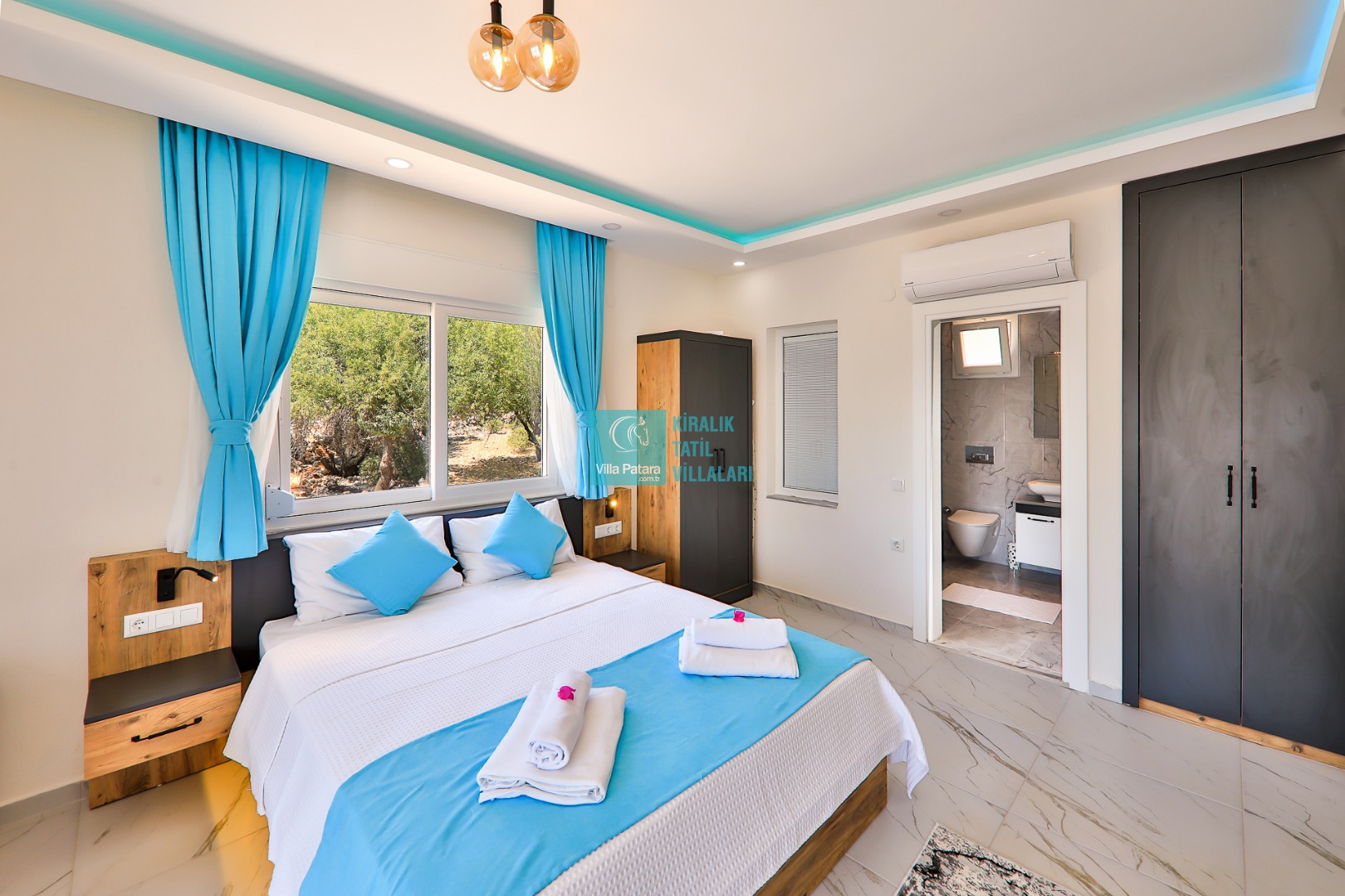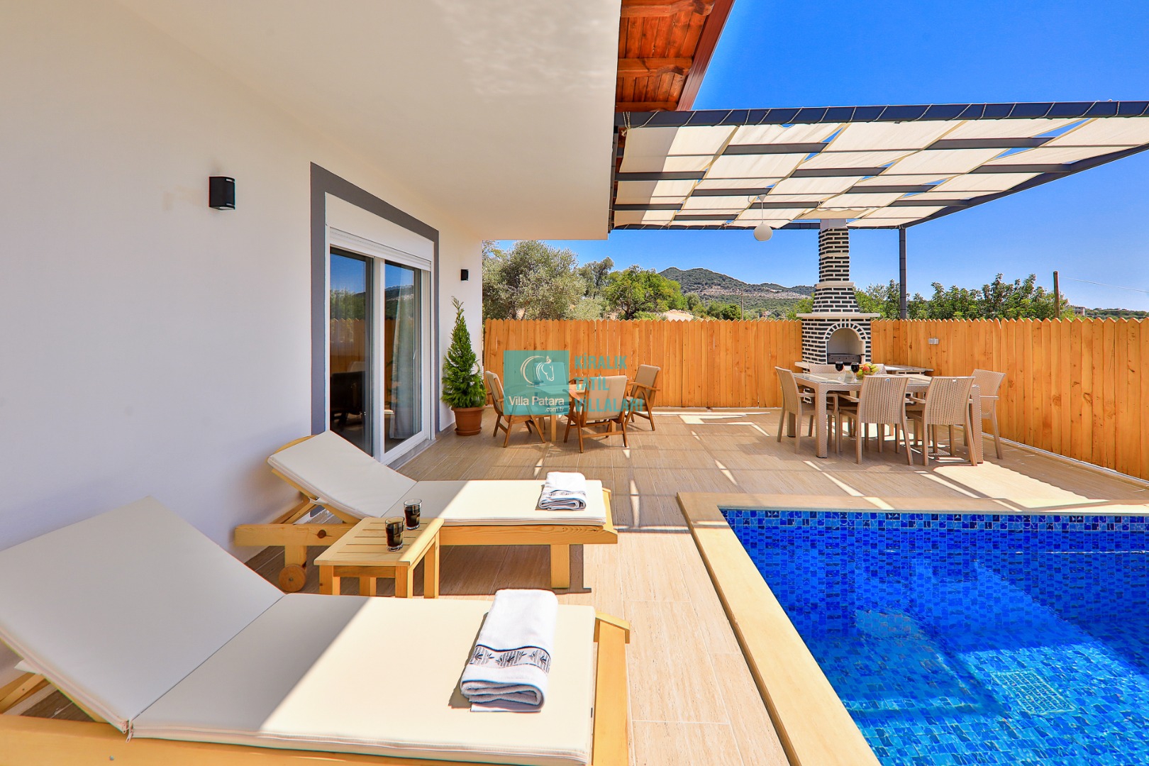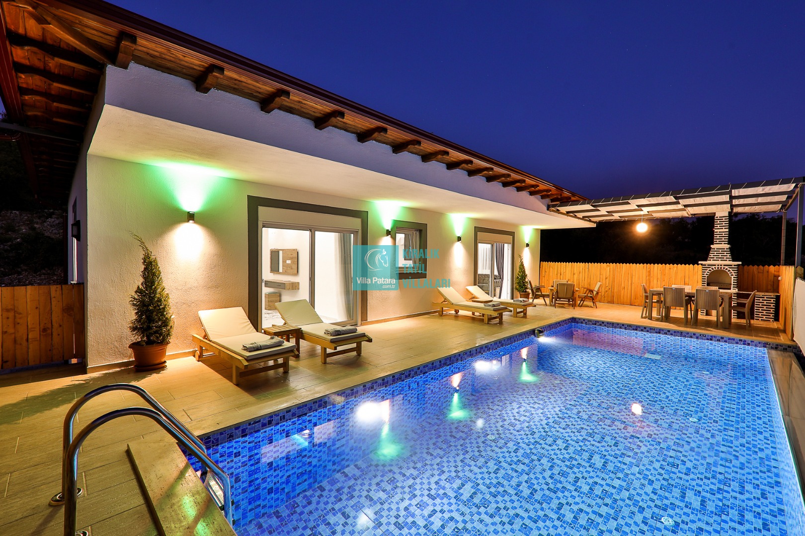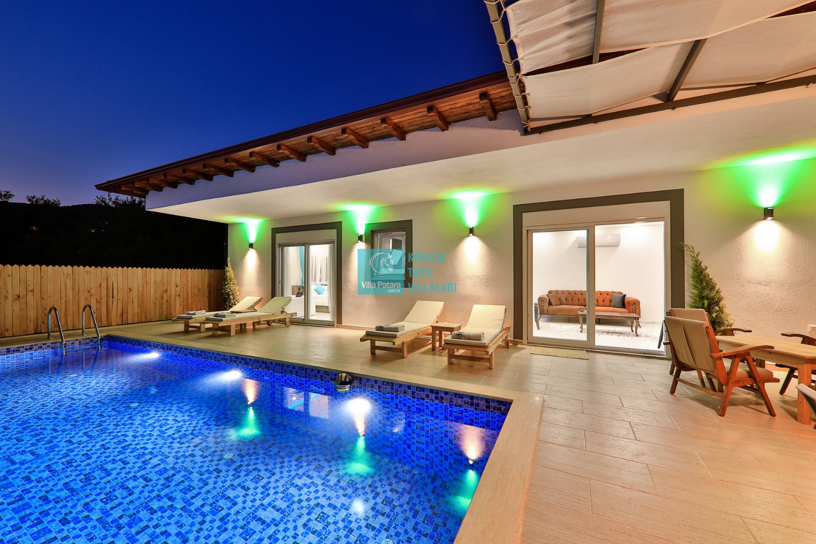 Antalya Kaş Bayındır Mahallesi’nde konumlu Villa Sönmez, 2 suit yatak odalı, 4 kişi kapasiteli, jakuzili, korunaklı tatil villasıdır.