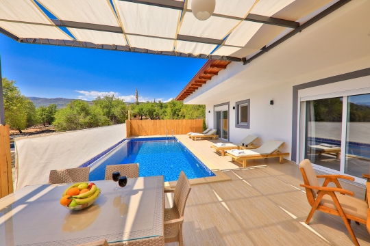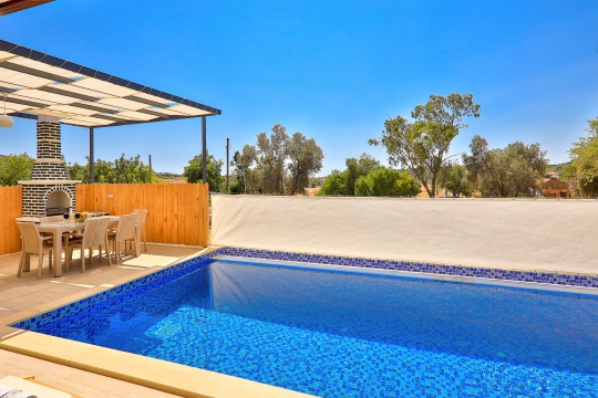 Sessiz ve sakin bir ortamda, denize 3 kilometre mesafede konumlu villamız, Temmuz 2021 de tamamlanmış olup, balayı çiftleri ve muhafazakar çekirdek aileler için ideal bir tatil villası seçeneği sunmaktadır.
