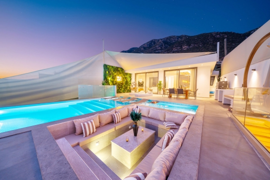 Kalkan kördere Mevkiinde sessiz ve huzurlu villada tatil isteyen çiftler ve aileler için oldukça uygun bir seçenektir. Muhafazakar villalar ve Deniz Manzaralı Villaları kategorisinde yer alan villamız, 3 yatak odası ile 6 kişilik konaklama kapasitesine sahiptir. Villamız bulunduğu konum dolayısı ile kalkanın en güzel panoramik deniz manzaralılarından birisine sahiptir. Ayrica villamızın havuz terasının altında hobi bahçesi ve sauna yer almaktadır.