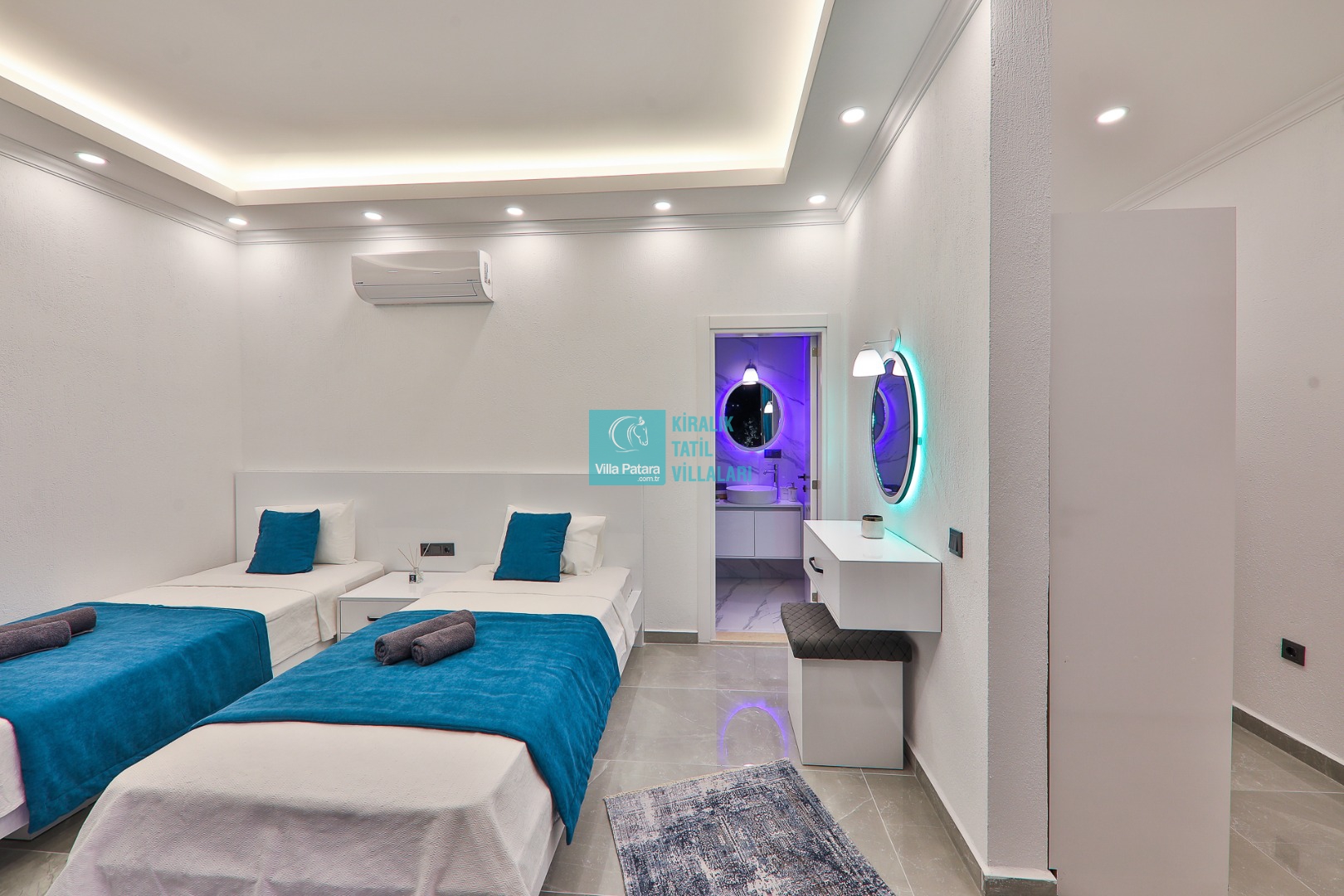 Kalkan-Sarıbelen bölgesinde bulunan kiralık tatil villamız doğa ile iç içe konumlanmış 2021 yapımlı bir villadır. Çekirdek aileler ve balayı çiftleri için ideal seçim olan Su perisi 2 yatak odası ve 4 kişilik misafir kapasitesi ile sizleri ağırlamaya hazırdır. Size özel havuzu ve geniş bahçe alanı ile çocuklu ailelerin ilk tercihlerinden biri olan villamızda, sığ havuz ve oyun alanı ile beraber, keyifli vakit geçirmenız adına masa tenisi ile jakuzimiz mevcuttur. Seviklerinizde keyifli bir tatil için bu fırsatı kaçırmayın..