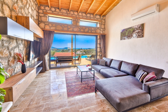 Kalkan ve çevre köyleri, coğrafi yapısı bakımından dağ yamaçlarına konumlanmış yerleşim birimlerinden oluşmaktadır. Bu nedenle villalara ulaşım sırasında yokuş yollar ve stabilize (toprak) yollar bulunmaktadır. (Bu not sadece bu villa ile ilgili değildir. Tüm villaların bilgilerinde yazmaktadır.)