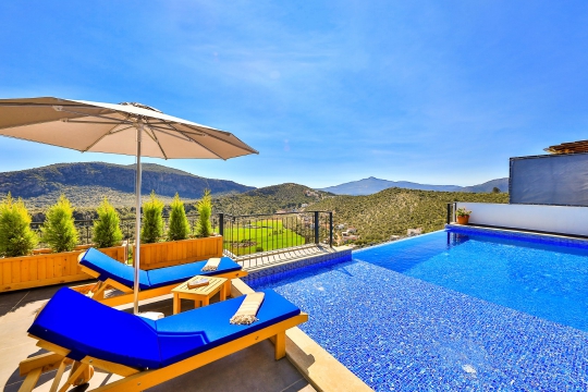 Havuz terasında şezlonglar ve güneş şemsiyes, mangal yapabilmeniz için barbekü alanı düşünülmüş olup hem balayı çiftleri için hemde çekirdek aileler için idealdir. Yazlık villa Kalkan merkeze oldukça yakın konumda olup hemen üst tarafında restaurant yer almaktadır.