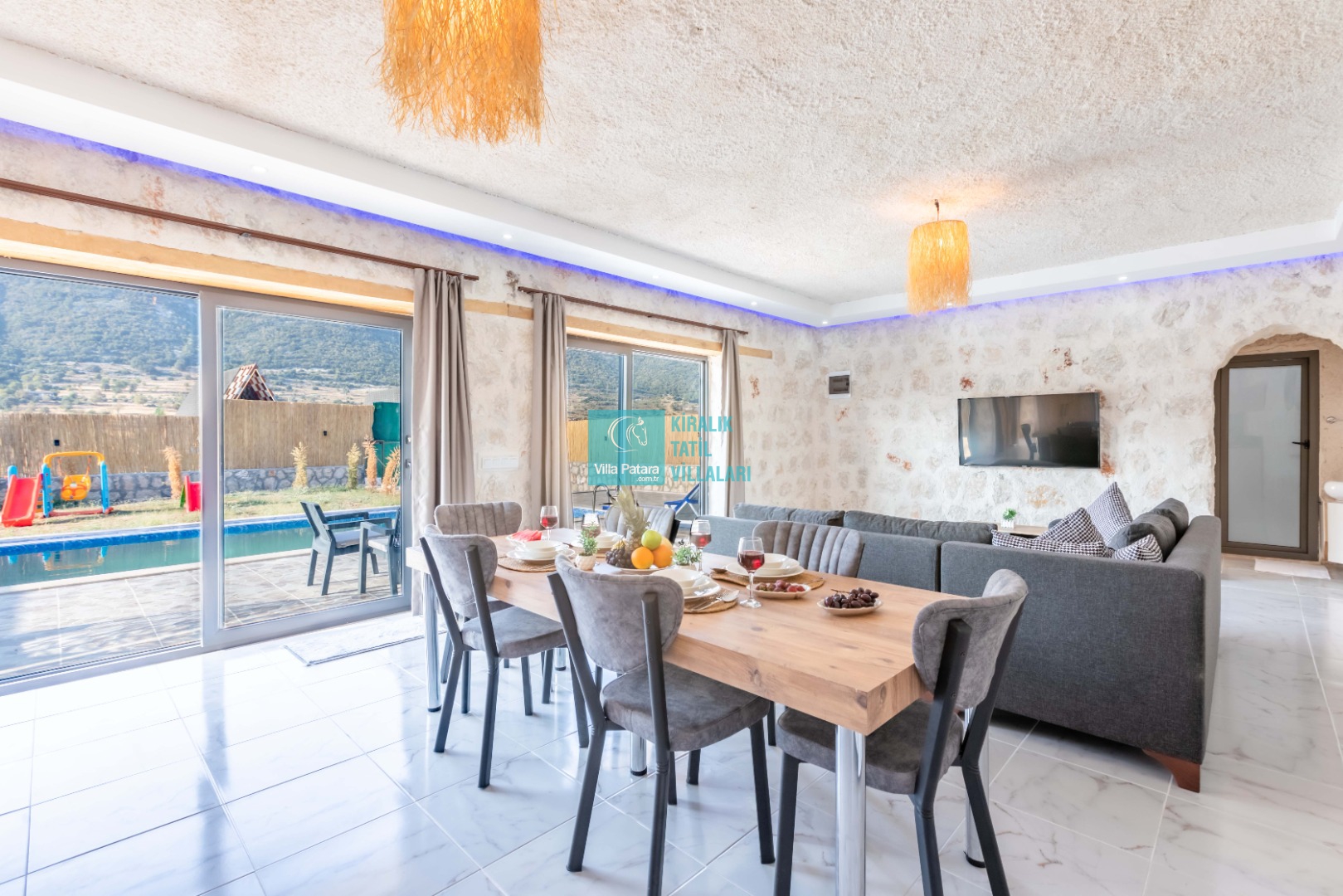 Genel Notlar : Doğa içerisinde yer alan villalarımızın tamamı böcek, sinek, kelebek, haşereler vb. için düzenli olarak ilaçlanmaktadır. Doğa içerisinde konuma sahip olan villalarda, merkezde yer alan villalara nazaran böcek, sinek, kelebek, haşereler vb. çıkma ihtimali daha yüksektir. Bu not sadece bu villa ile ilgili değildir. Doğa içerisinde konuma sahip olan tüm villaların bilgilerinde yazılmaktadır.