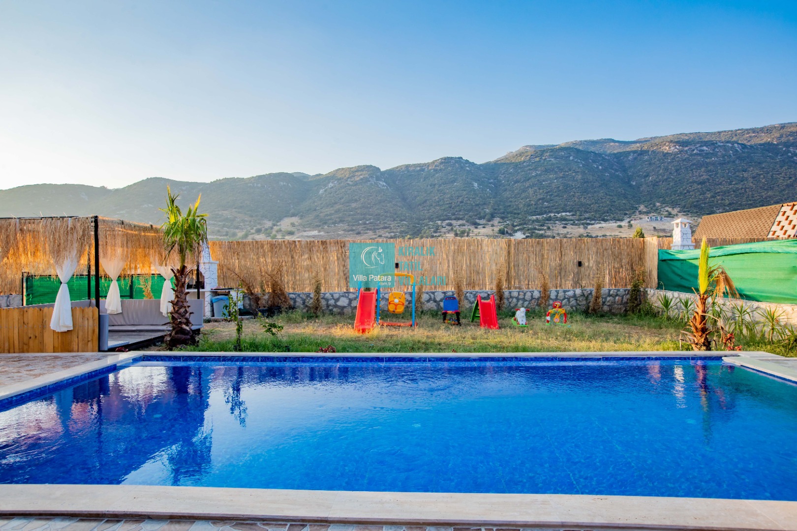 Genel Notlar : Doğa içerisinde yer alan villalarımızın tamamı böcek, sinek, kelebek, haşereler vb. için düzenli olarak ilaçlanmaktadır. Doğa içerisinde konuma sahip olan villalarda, merkezde yer alan villalara nazaran böcek, sinek, kelebek, haşereler vb. çıkma ihtimali daha yüksektir. Bu not sadece bu villa ile ilgili değildir. Doğa içerisinde konuma sahip olan tüm villaların bilgilerinde yazılmaktadır.