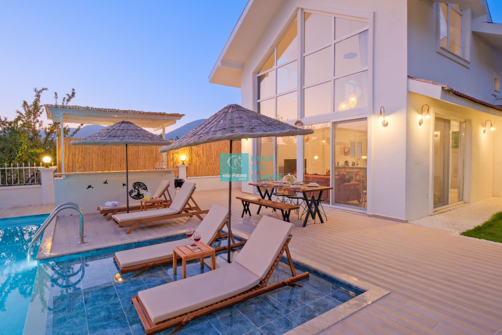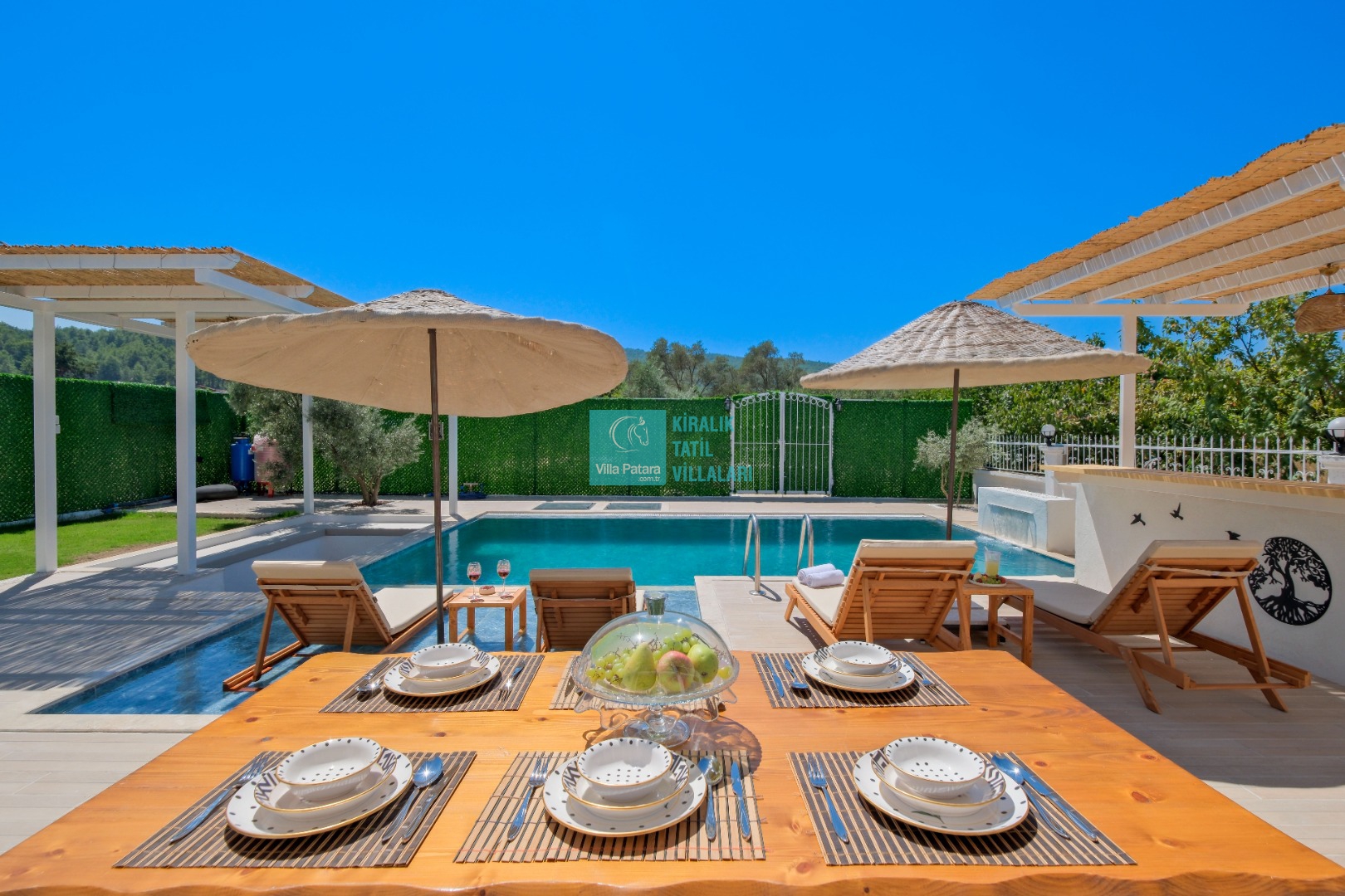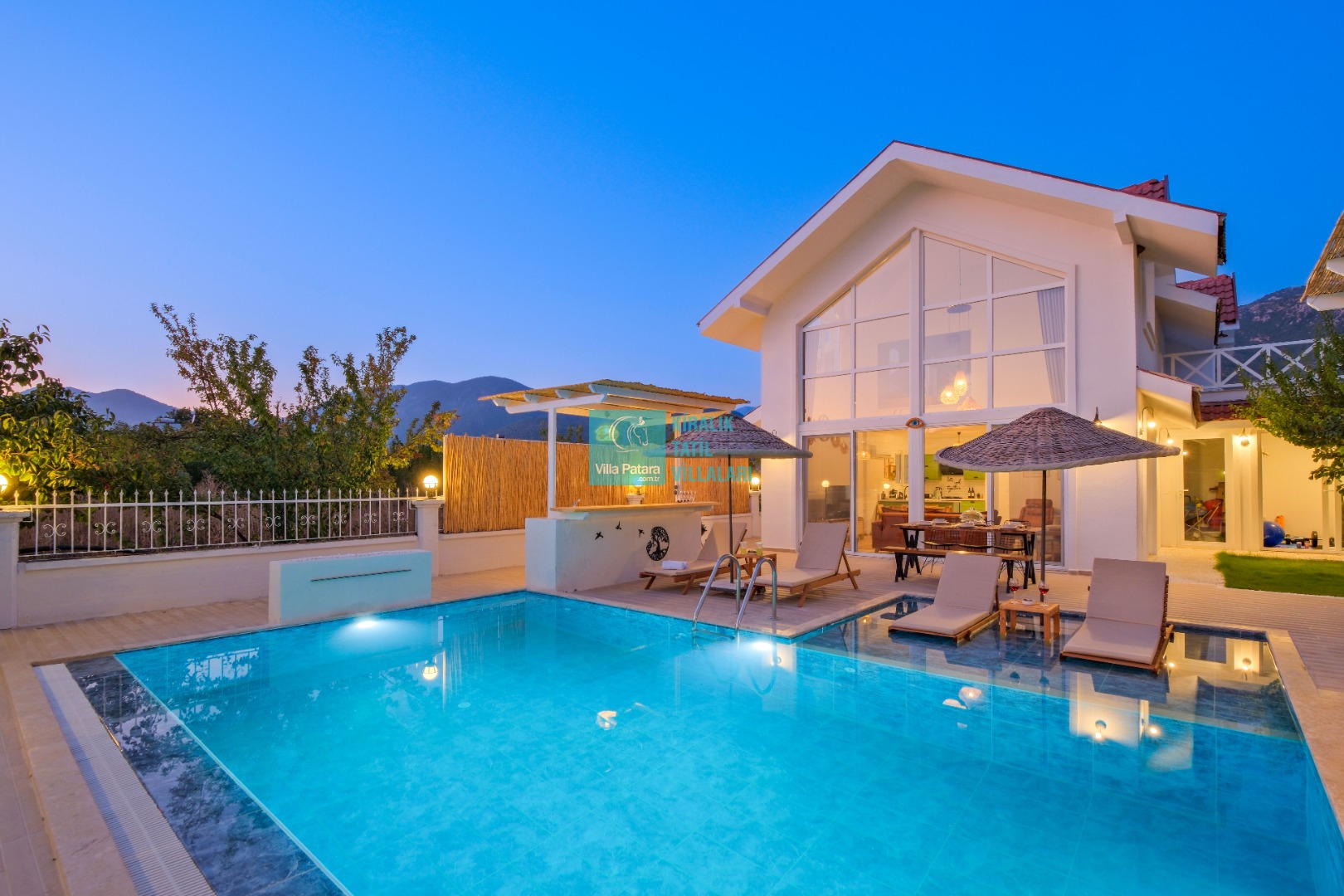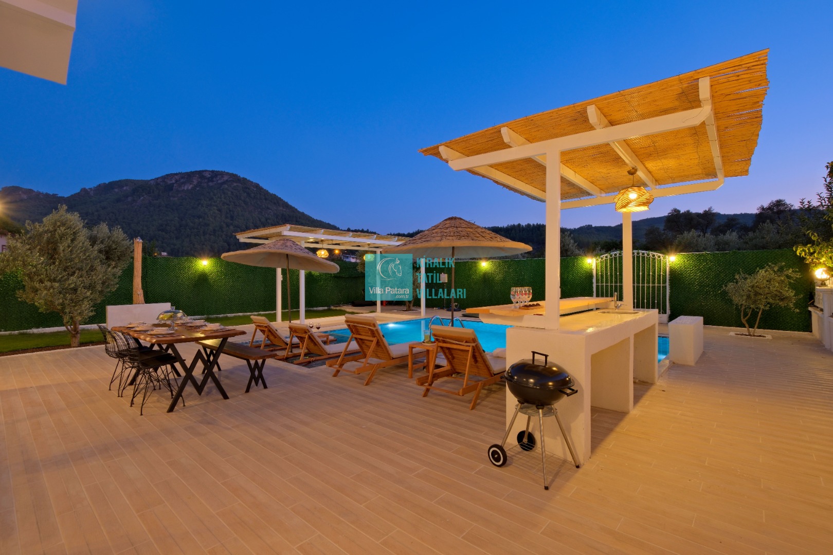 Genel Notlar : Doğa içerisinde yer alan villalarımızın tamamı böcek, sinek, kelebek, haşereler vb. için düzenli olarak ilaçlanmaktadır. Doğa içerisinde konuma sahip olan villalarda, merkezde yer alan villalara nazaran böcek, sinek, kelebek, haşereler vb. çıkma ihtimali daha yüksektir. Bu not sadece bu villa ile ilgili değildir. Doğa içerisinde konuma sahip olan tüm villaların bilgilerinde yazılmaktadır.