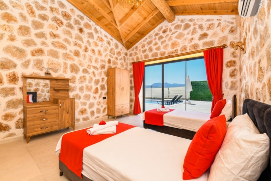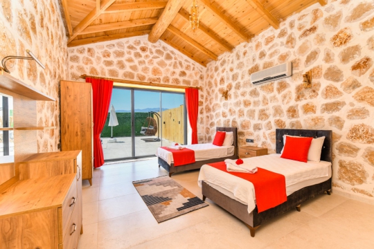 -Villamız 2 yatak odasına sahip olup 4 kişilik konaklama kapasitesine sahiptir.