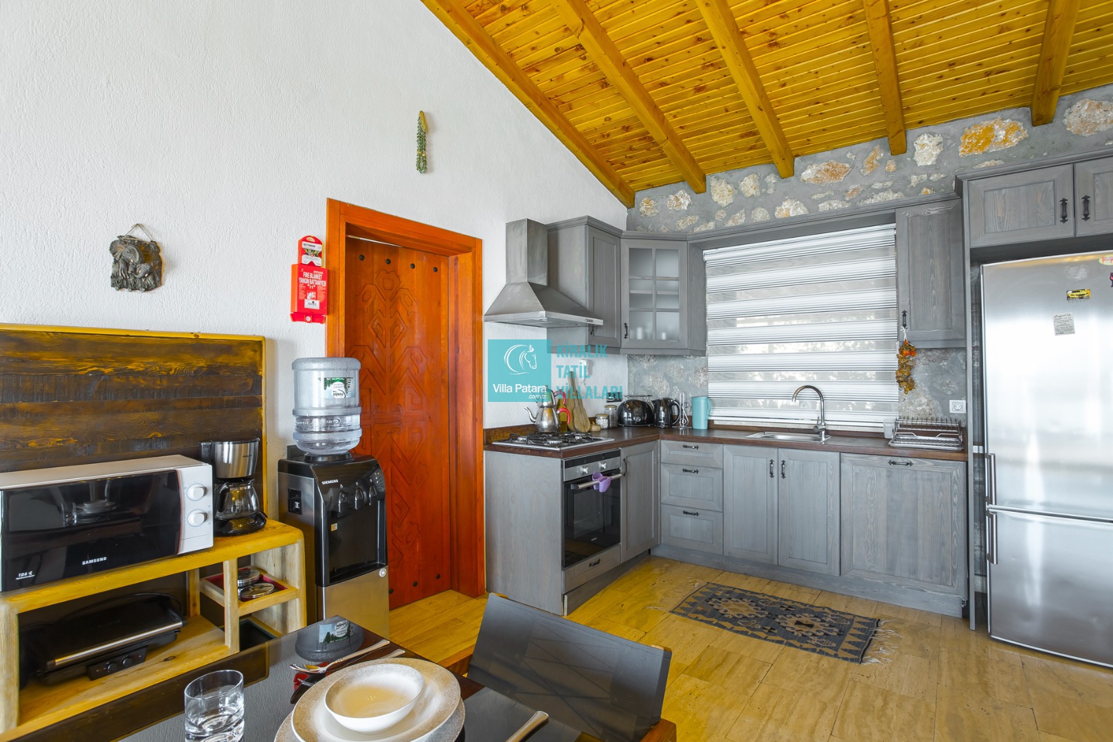 MUTFAK: Modern Amerikan mutfağa sahip olan villada; buzdolabı, bulaşık makinesi, çamaşır makinesi, ankastre fırın, mikrodalga fırın, ankastre 4’lü ocak, filtre kahve ve Türk kahve makineleri, portakal sıkacağı, tost makinesi, 6 kişilik yemek masası, yemek takımı, tava, tencereler, çatal, bıçak vs. gibi ihtiyacınız olan bütün detaylar düşünülmüştür.