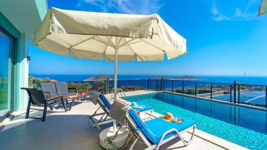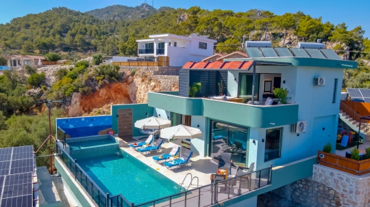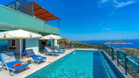 Kalkan Patara Yalı bölgesinde harika bir bölgeye konumlandırılmış deniz manzaralı kiralık villa seçeneklerimizdendir. Kiralık Villa Teciroğlu 3, balayı villaları, jakuzili villalar, deniz manzaralı villalar, denize yakın villalar, çocuk havuzlu villalar ve doğa içerisinde villalar kategorisinde yer alan 2 yatak odalı 4 kişi konaklama olanağına sahip villamızdır. Kendini gösteren, modern ve çarpıcı bir etki yaratan, bir villadır. Villamız, havuz terasından muhteşem deniz manzarasına hakimdir. Villamızda çocuk oyun parkı bulunmaktadır. Bu villada, her şey istediğiniz gibi tasarlanmış. Konforunuz için özel olarak tasarlanan Villa Teciroğlu 3, ihtiyaçlarınızı tam anlamıyla karşılamak için gereken her şeyi bünyesinde barındırıyor. Gözlerden uzak rahat bir tatil olanağını her anlamda sizlere sunabilen özel bir villadır. Deniz manzarası eşliğinde hem keyifli vakitler geçirebilir hem de tüm yılın yorgunluğunu atabilirsiniz. Ailenizle ,arkadaş grubunuzla veya balayı tatilleri için unutulmaz zamanlar geçirebileceğiniz kiralık tatil villalarından biridir. İnşası yeni tamamlanmış doğa içerisindeki bu modern villamız sizleri tatile davet etmektedir.