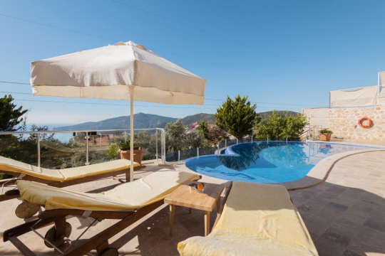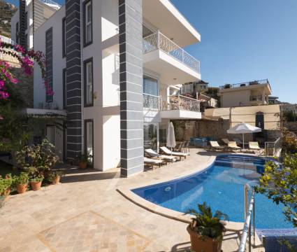 Kalkan’ın Kızıltaş mevkisinde bulunan deniz manzaralı kiralık tatil villası Tepe, 4 yatak odası ile 8 kişilik konaklama kapasitesine sahiptir. Geniş aileler ya da arkadaş grupları için ideal bir seçenek olan villamızın, bütün yatak odalarında klima, banyo&WC ve deniz manzarası bulunmaktadır. Deniz manzaralı villalar vejakuzili villalar kategorisindeki kiralık Villa Tepe tripleks olup birinci katta salon mutfak, ikinci katta iki yatak odası, üçüncü katta yine iki yatak odası bulunmaktadır. Kalkan’ın muhteşem şehir ve deniz manzarasını kesintisiz izleme şansına sahip olacağınız Kiralık Yazlık Villa Tepe, bütün detaylar kusursuz bir tatil için tasarlanmıştır.