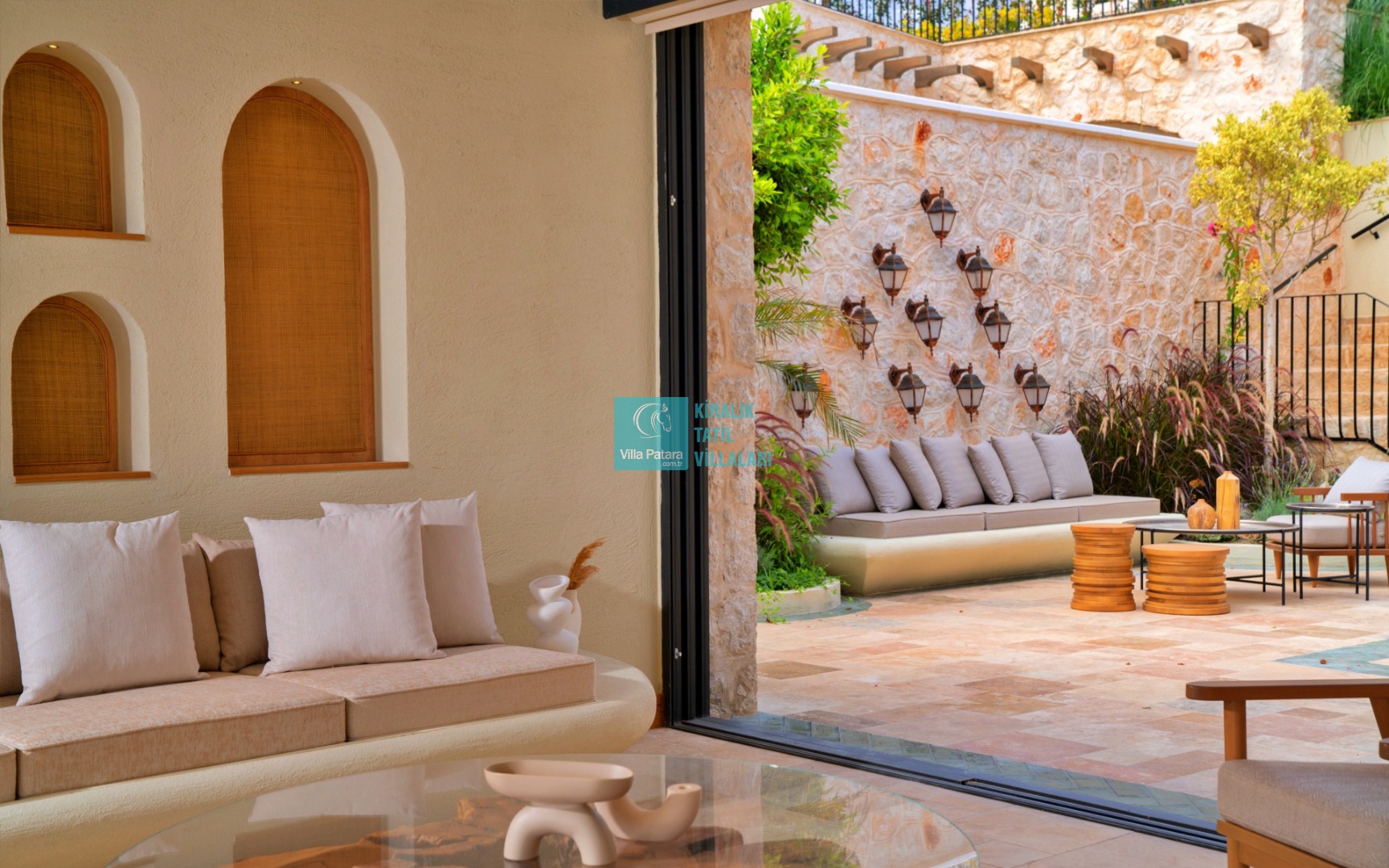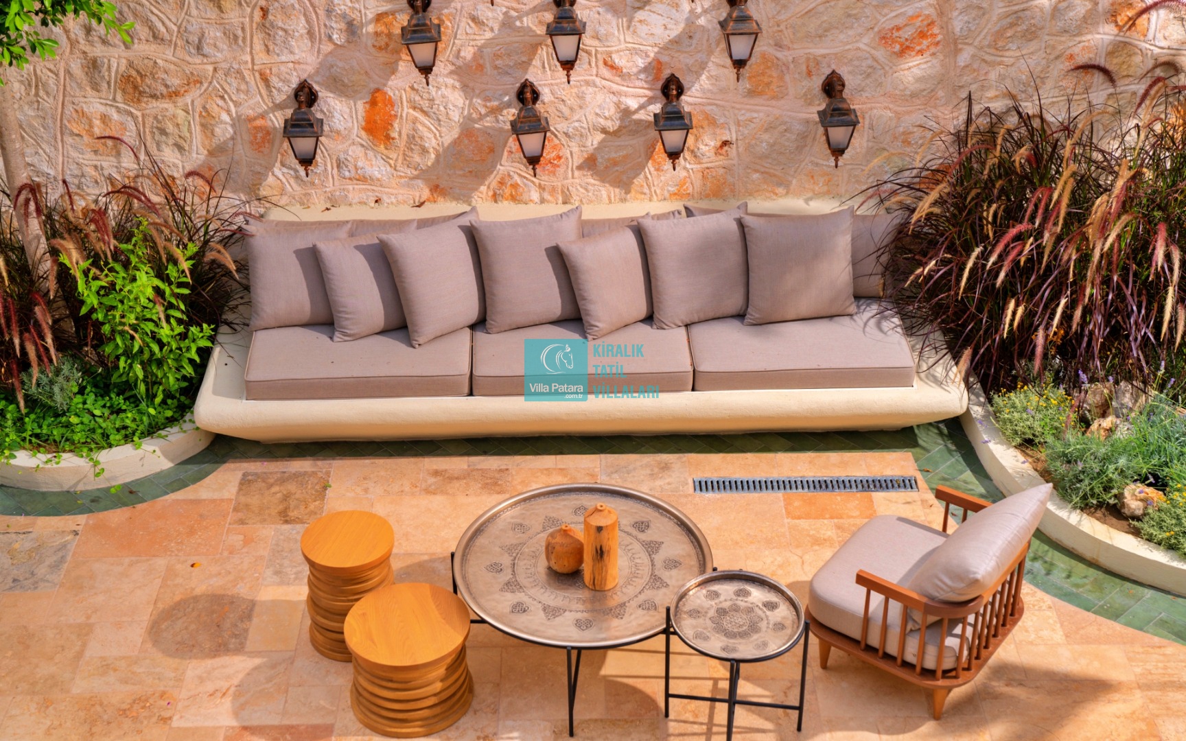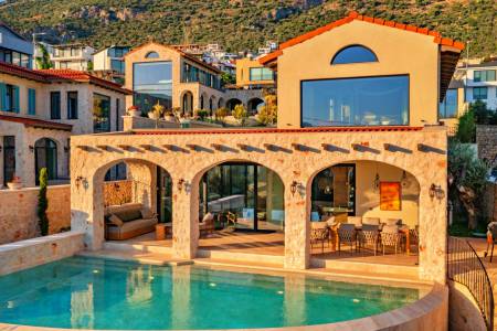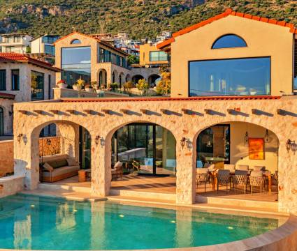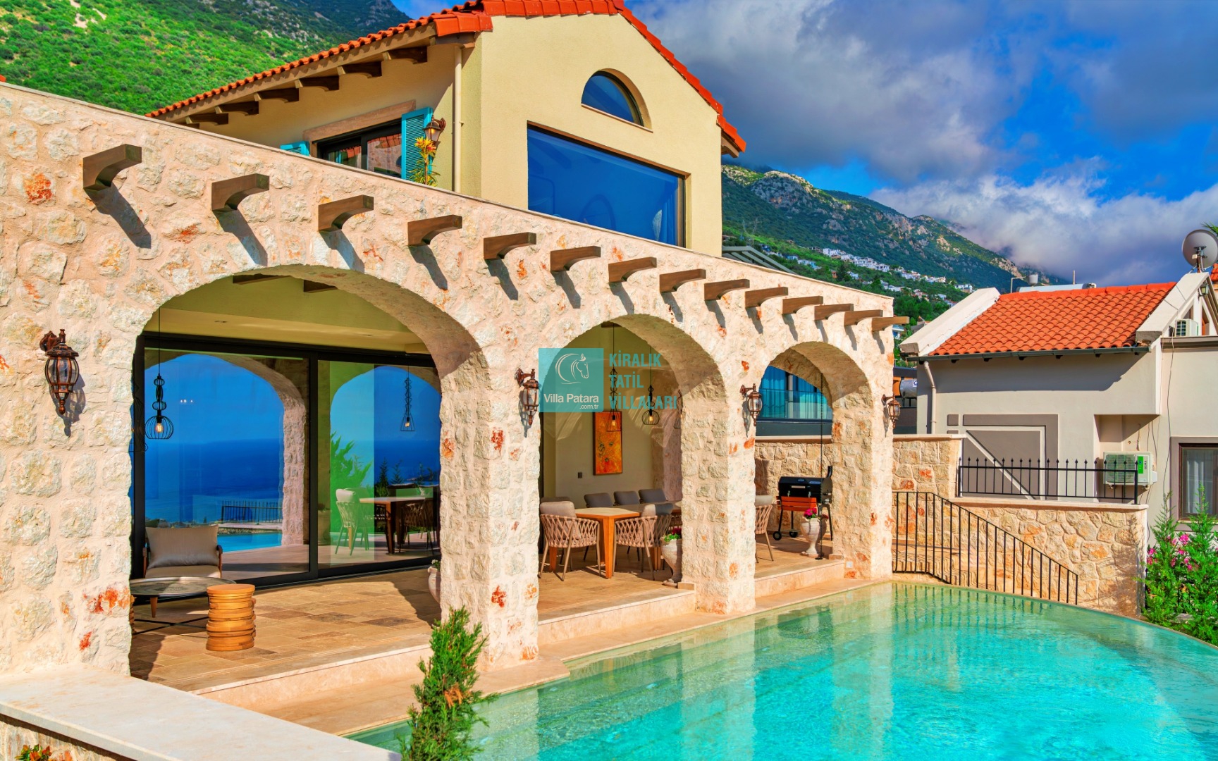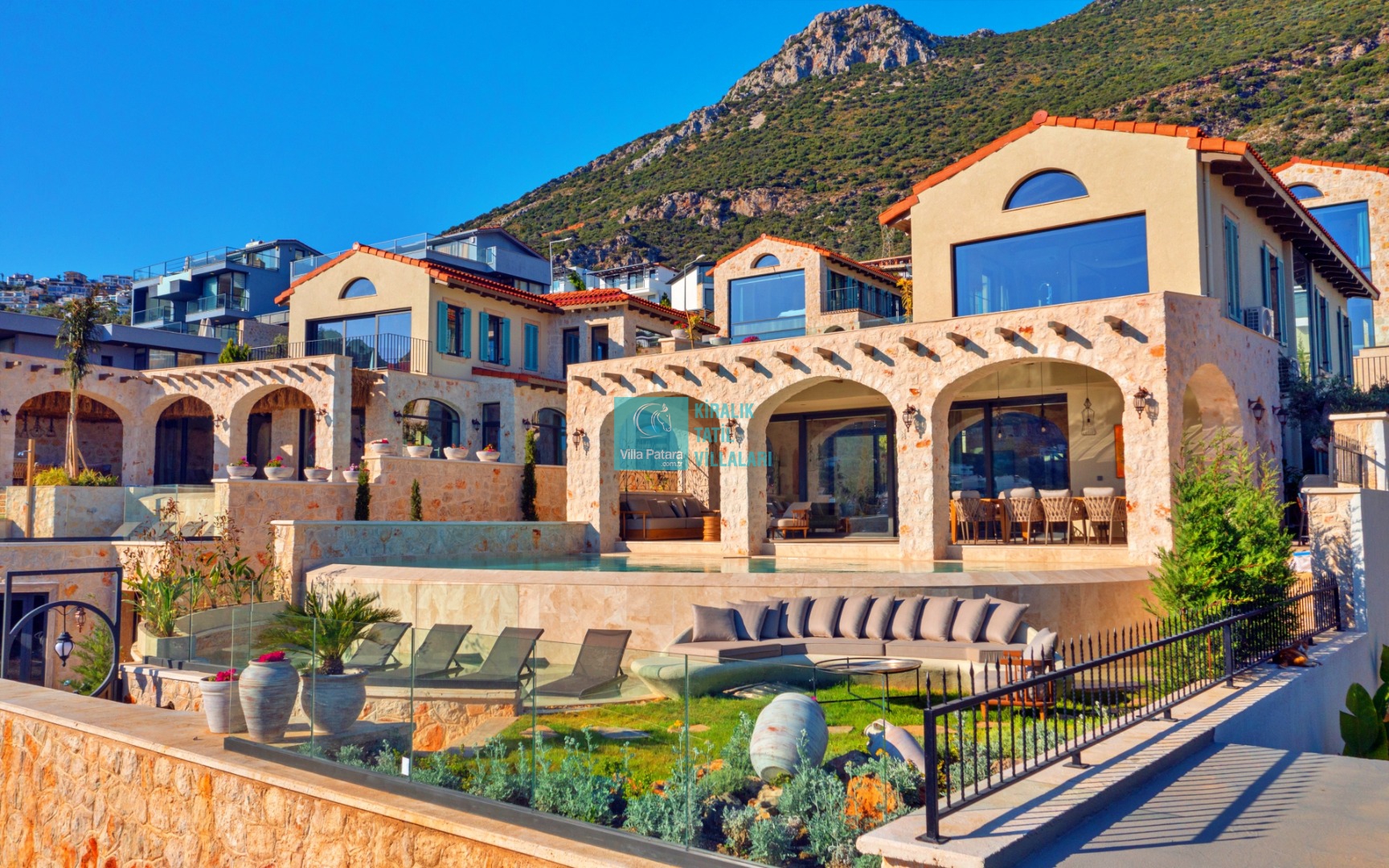 Likya mimarisinden esinlenerek yapılan ve Lüks bir konaklama seçeneği olan Villa Thalia'ya hoş geldiniz. Kalkan merkezde konumlanan bu benzersiz villa, hem dağların huzurunu hem de denizin ferahlığını bir arada sunmaktadır. Özel tasarımı ve zarafeti ile dikkat çeken Villa Thalia, misafirlerine eşsiz bir lüks deneyimi vaad ediyor. Her detayında konfor ve şıklığı bir araya getiren olanaklara sahip, geniş ve ferah odaları, modern mobilyaları ve zarif dekorasyonuyla size lüks bir tatil deneyimi sunmakta. taş kaplı duvarları, sütunları, kemerleri ve etkileyici havuzları ile size tarihi bir atmosfer sunar. Bu antik görünümlü villa, ziyaretiniz boyunca sizi Likya dönemine götürecek ve antik Likya kıyılarında unutulmaz bir tatil deneyimi yaşatacaktır.