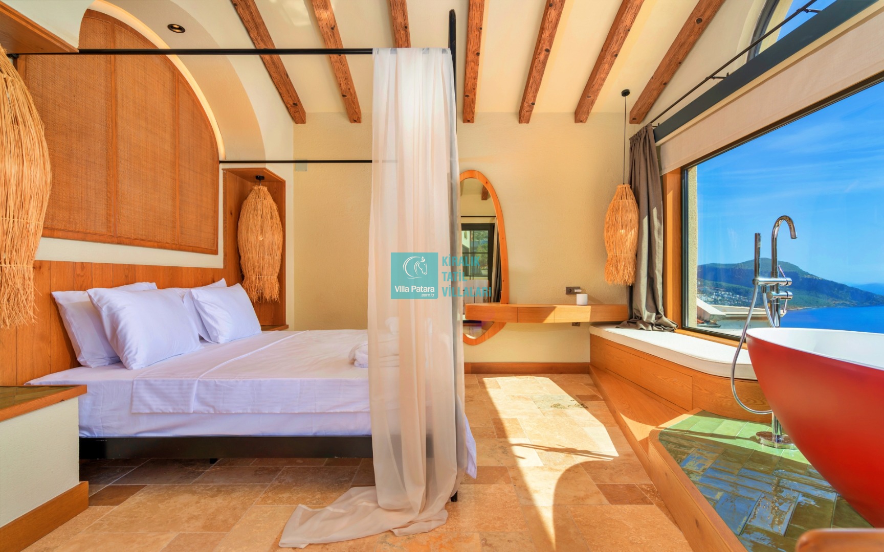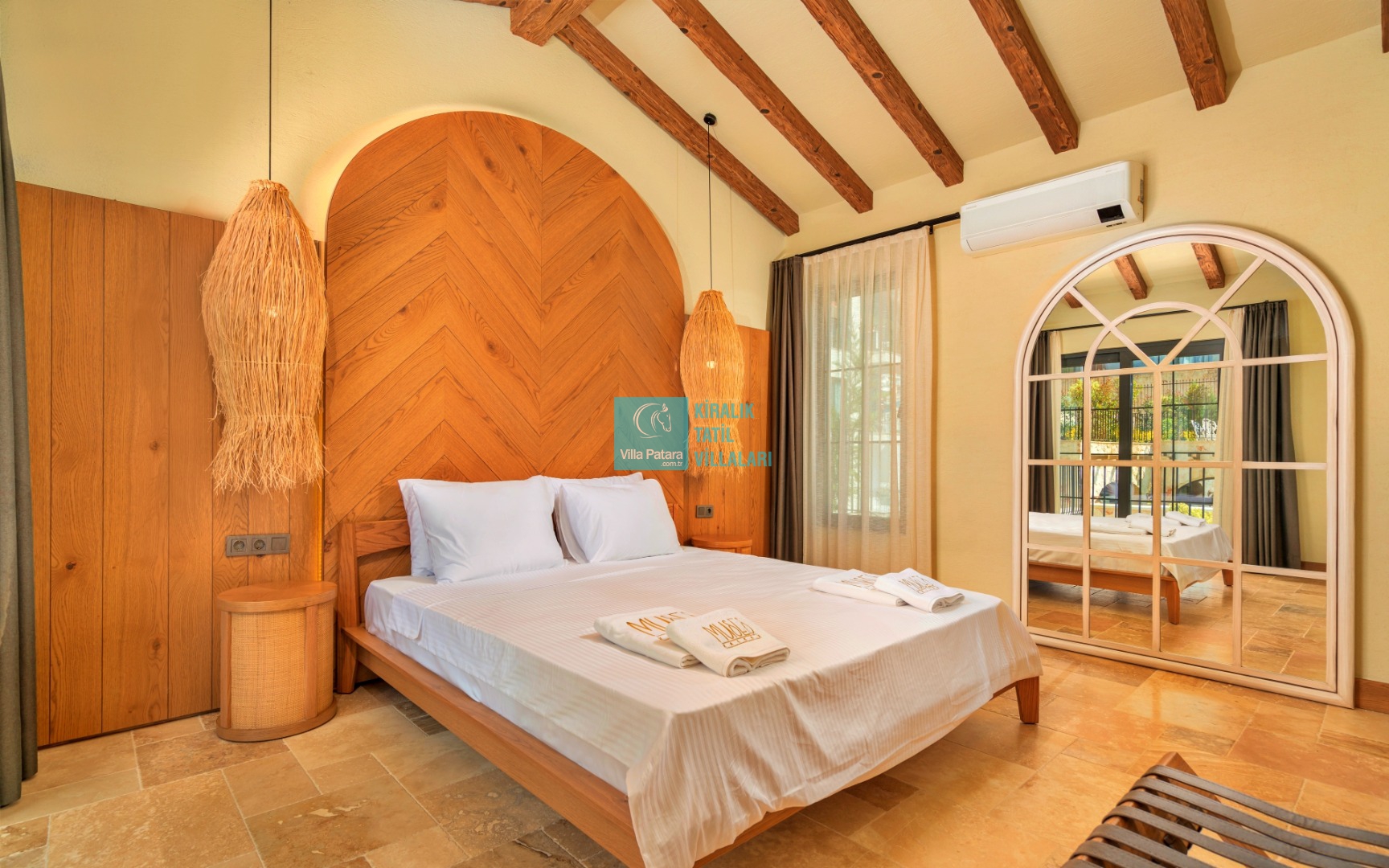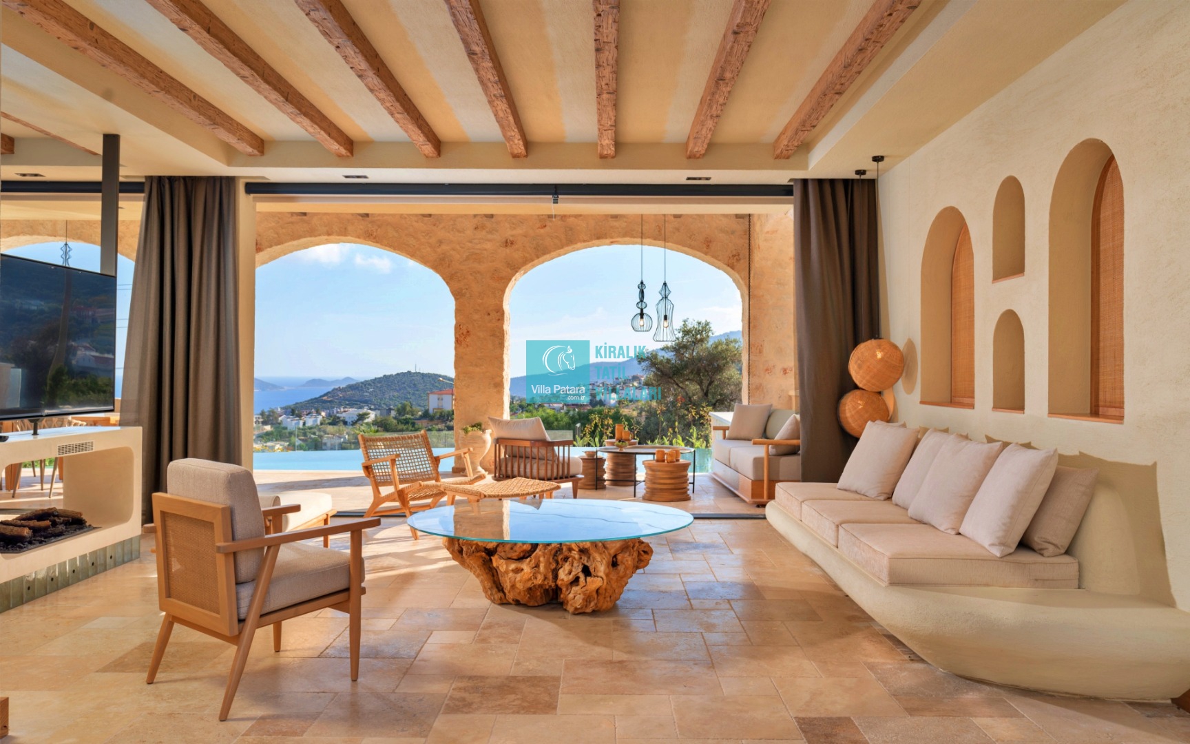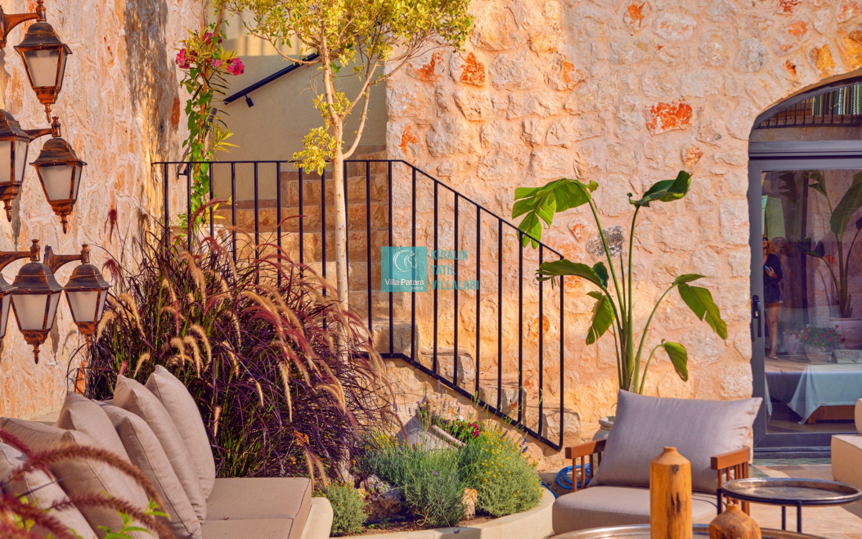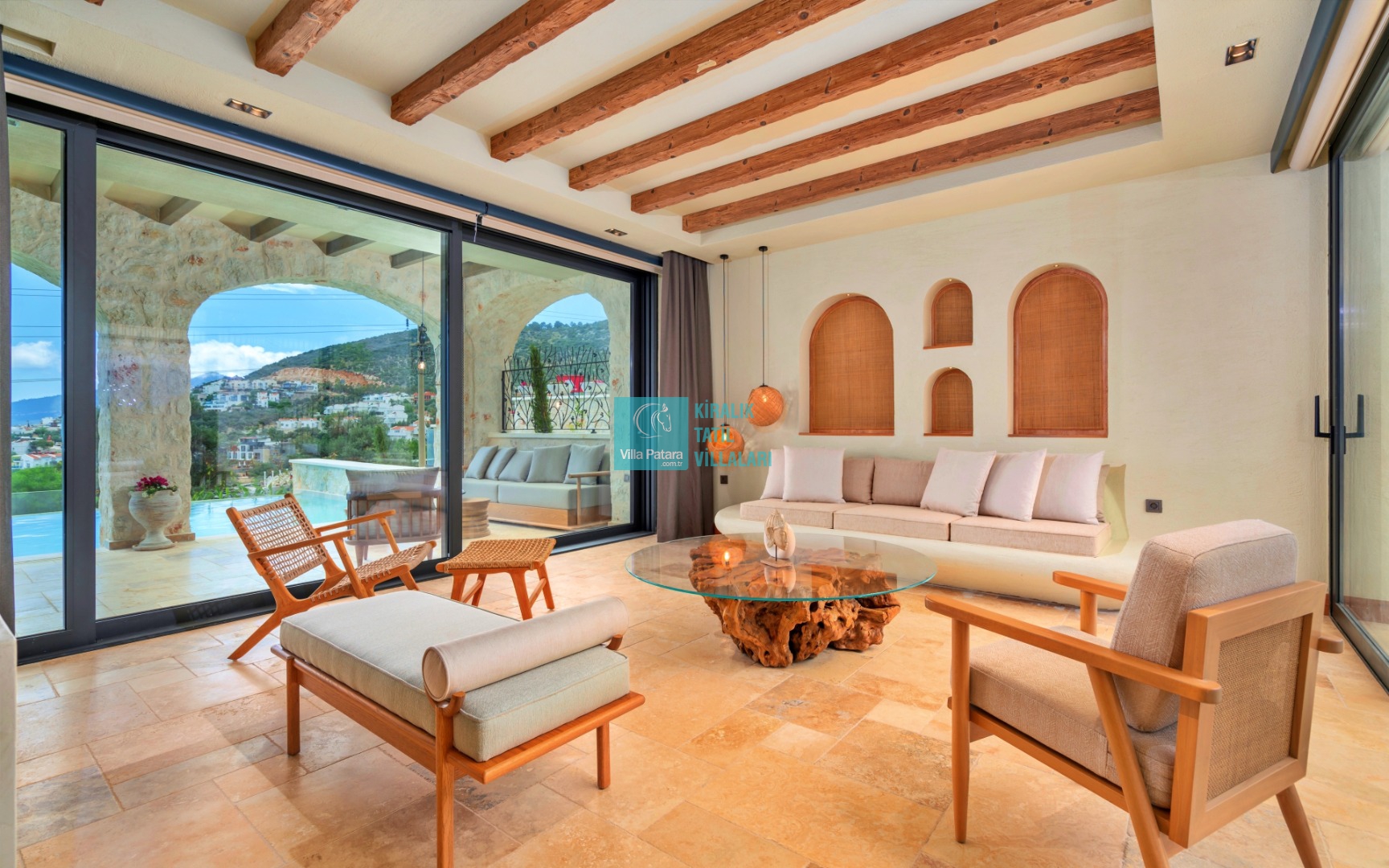 Likya mimarisinden esinlenerek yapılan ve Lüks bir konaklama seçeneği olan Villa Thalia'ya hoş geldiniz. Kalkan merkezde konumlanan bu benzersiz villa, hem dağların huzurunu hem de denizin ferahlığını bir arada sunmaktadır. Özel tasarımı ve zarafeti ile dikkat çeken Villa Thalia, misafirlerine eşsiz bir lüks deneyimi vaad ediyor. Her detayında konfor ve şıklığı bir araya getiren olanaklara sahip, geniş ve ferah odaları, modern mobilyaları ve zarif dekorasyonuyla size lüks bir tatil deneyimi sunmakta. taş kaplı duvarları, sütunları, kemerleri ve etkileyici havuzları ile size tarihi bir atmosfer sunar. Bu antik görünümlü villa, ziyaretiniz boyunca sizi Likya dönemine götürecek ve antik Likya kıyılarında unutulmaz bir tatil deneyimi yaşatacaktır.