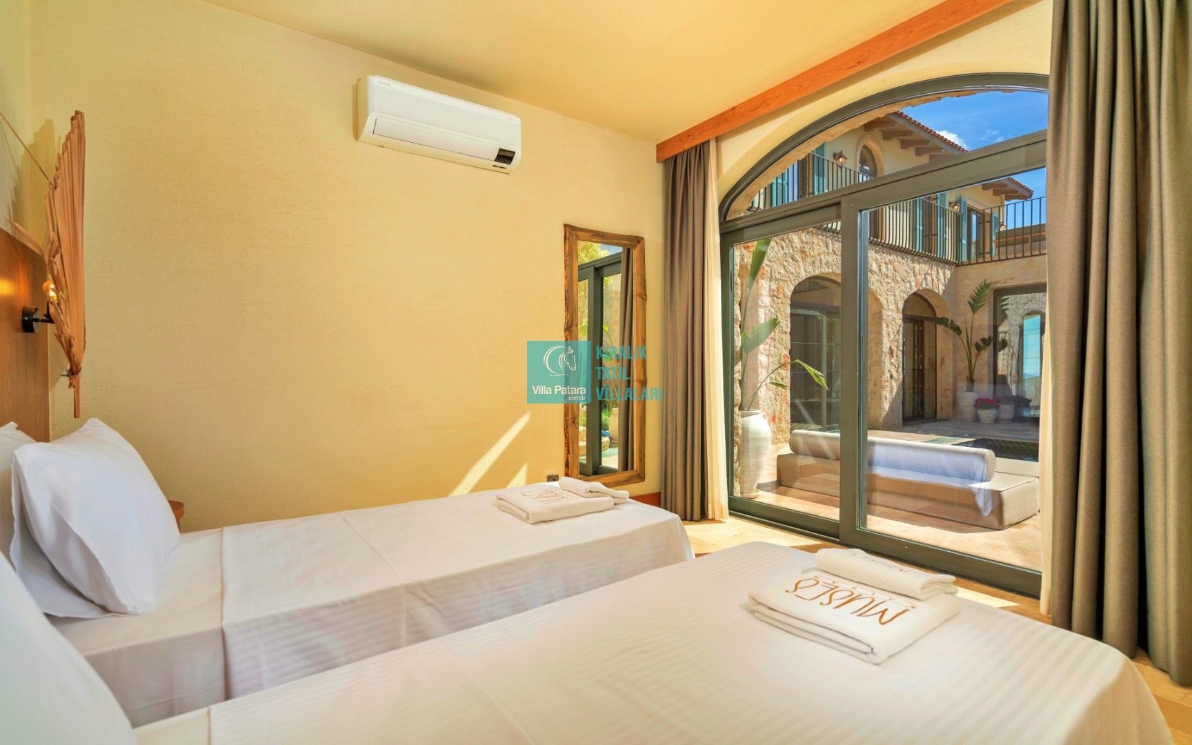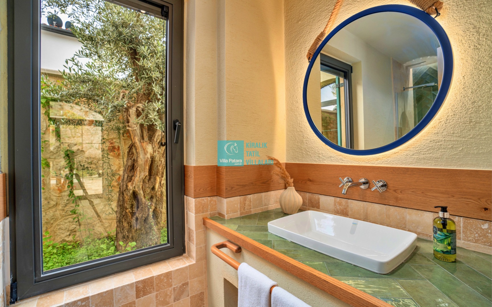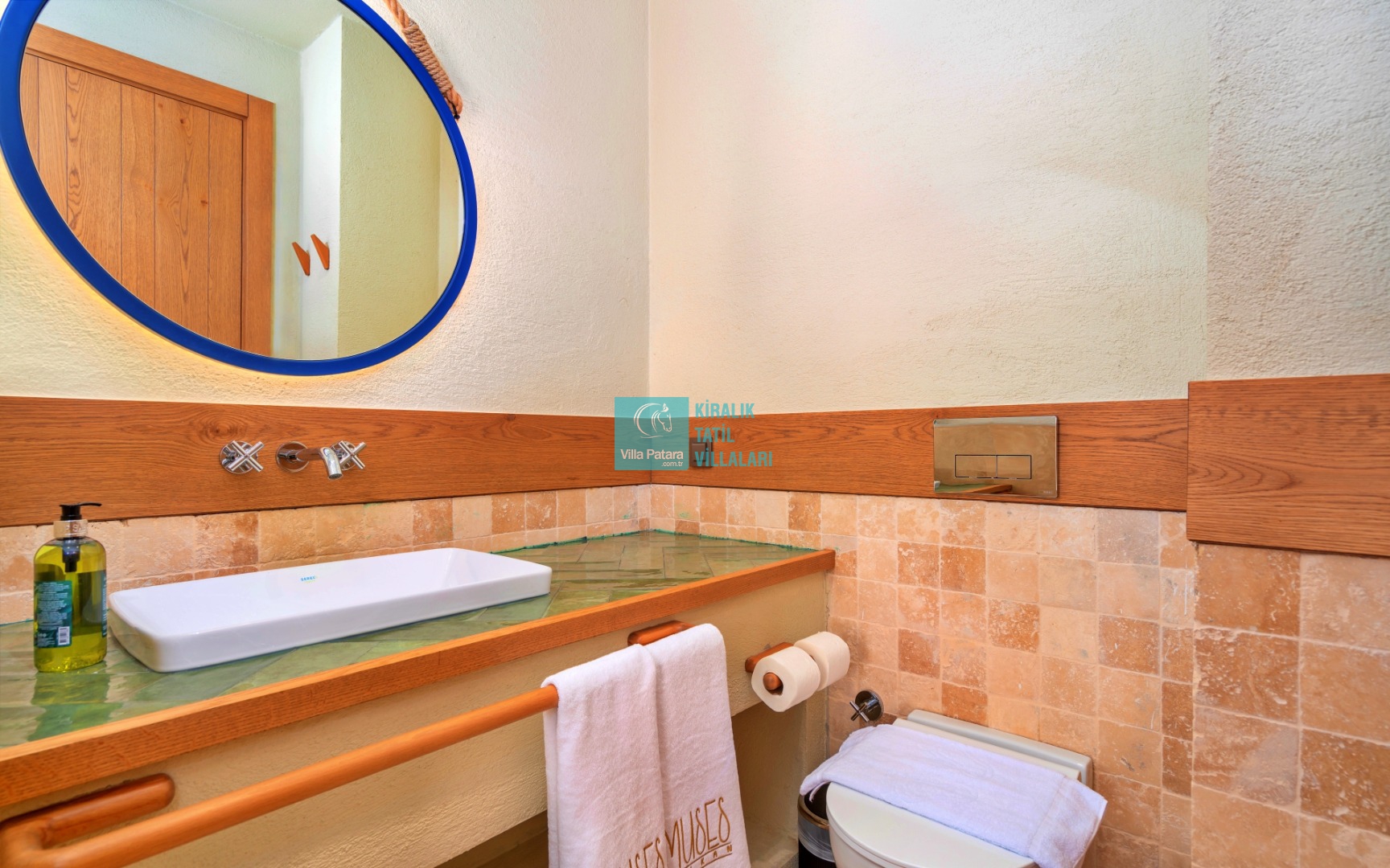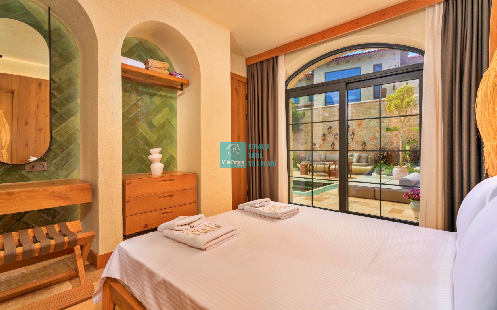 Likya mimarisinden esinlenerek yapılan ve Lüks bir konaklama seçeneği olan Villa Thalia'ya hoş geldiniz. Kalkan merkezde konumlanan bu benzersiz villa, hem dağların huzurunu hem de denizin ferahlığını bir arada sunmaktadır. Özel tasarımı ve zarafeti ile dikkat çeken Villa Thalia, misafirlerine eşsiz bir lüks deneyimi vaad ediyor. Her detayında konfor ve şıklığı bir araya getiren olanaklara sahip, geniş ve ferah odaları, modern mobilyaları ve zarif dekorasyonuyla size lüks bir tatil deneyimi sunmakta. taş kaplı duvarları, sütunları, kemerleri ve etkileyici havuzları ile size tarihi bir atmosfer sunar. Bu antik görünümlü villa, ziyaretiniz boyunca sizi Likya dönemine götürecek ve antik Likya kıyılarında unutulmaz bir tatil deneyimi yaşatacaktır.