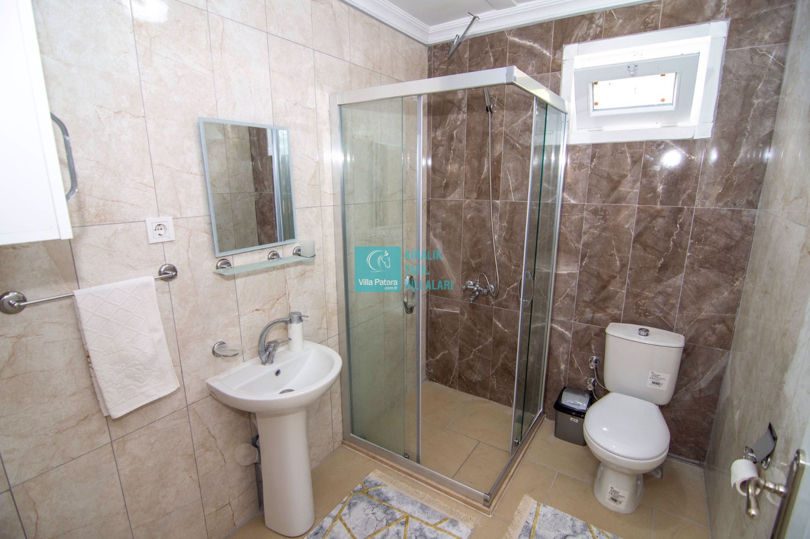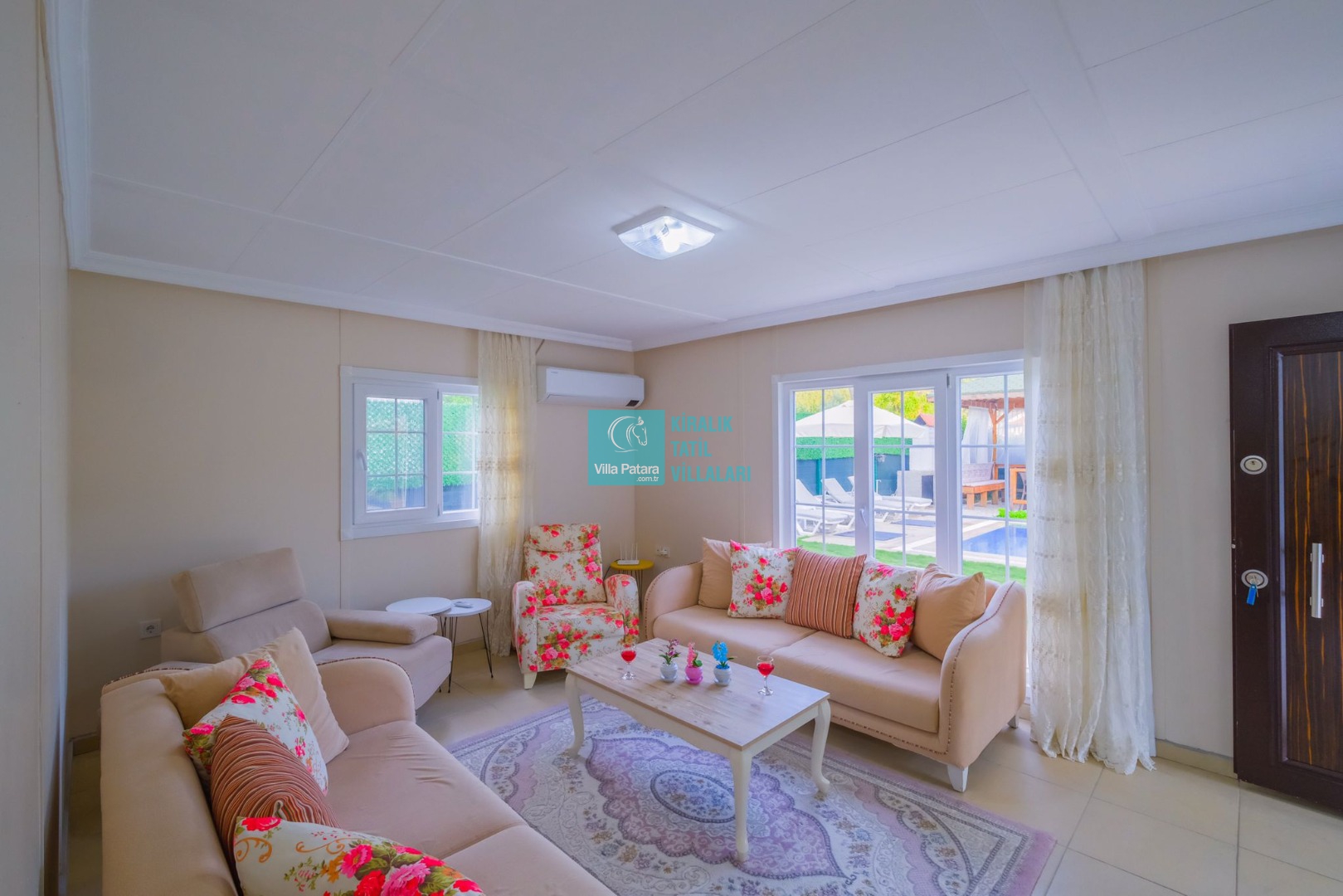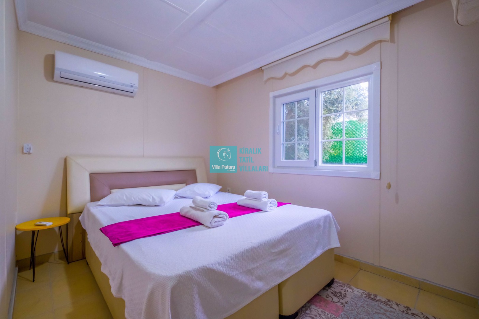 Maksimum 7 kişinin konaklayabileceği villamızın toplam 2 adet yatak odasının 2 tanesinde de 1'er adet çift kişilik yatak bulunmaktadır. Ayrıca salonda 2 kişilik yatma imkanı vardır. Villamızdaki yatak odalarının 1 tanesinde ebeveyn banyosu bulunmakta olup diğeri ortak banyodur. Villamızın tüm yatak odaları ve salonda klima bulunmaktadır. Villamızın tüm eşyaları oldukça konforlu ve zevkinize uygun olacağını düşündüğümüz şekilde döşenmiştir.