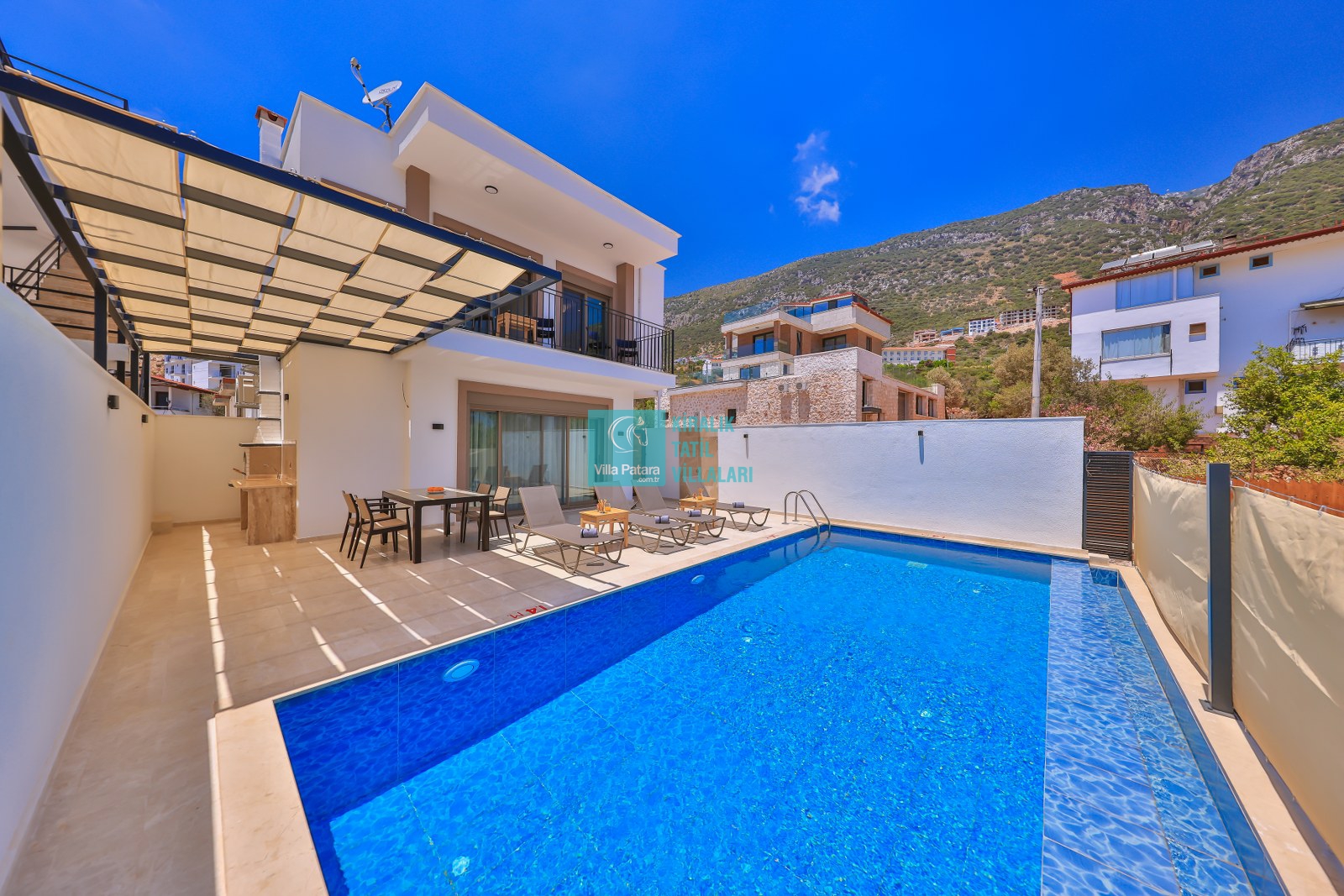 Villamız Antalya’nın en çok tercih edilen tatil bölgesi Kaş/Gökseki mevkiinde yer almaktadır. Masmavi koylara ve muhteşem adalar manzarasına hakim bir noktadadır. Doğa içerisinde, bol oksijenli tertemiz havasıyla konaklayanlarına sağlıklı ve dingin bir tatilin kapılarını aralamaktadır