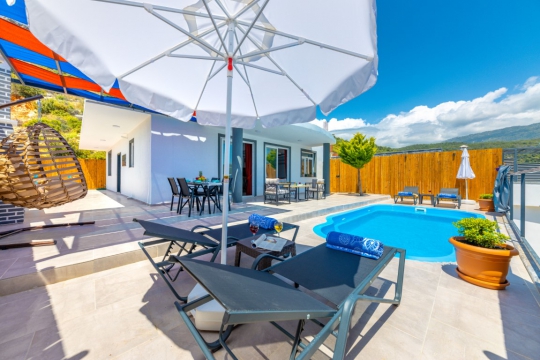 Kalkan Yeşilköy mevkisinde bulunan Villa Tuana, 2 yatak odalı 4 kişi konaklama kapasiteli havuzu korunaklı villadır. 2023 yılında inşaatı tamamlanan villamızın ebeveyn yatak odasında jakuzi bulunmaktadır. Çocuklu ailelerimizin de düşünüldüğü villamızda küçük bir oyun alanı mevcuttur. Muhteşem doğa manzarası eşliğinde tüm bir yılın yorgunluğunu üzerinizden atabileceğiniz Villa Tuana sizleri bekliyor.