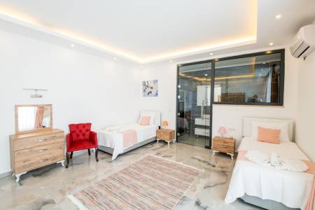 Yapımı 2019 temmuzda biten lüks ve full manzaralı kiralık tatil villamız balayı çiftlerimiz ve küçük ailelerimiz için ideal bir villadır. kapasitesi 5 kişilik lüks villamızda siz değerli misafirlerimizin rahatı için hiçbir masraftan kaçınılmamış ve kaliteli mobilyalar ev araç gereçleri kullanılmıştır. Sessizliğin simgesi kalkanın en güzel manzarasına sahip olan bölgemizde bulunan tatil villamız kalkan merkeze araçla 6-7 dakika mesafededir. Oda içerisinde Özel jakuzisi, muhteşem manzarası ve lüks dizaynı ile tatilinize keyif katacak olan villamızı gönül rahatlığıyla kiralayabilir unutulmaz bir tatil keyfi yaşayabilirsiniz.