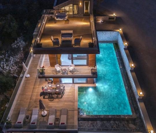 Villa Uğurlu, Kalkan Kışka mevkiinde bulunan özel havuzlu deniz manzaralı villamızdır.Villamız plaja 80 metre mesafededir.Kalabalık arkadaş grupları ve kalabalık aileler için son derece konforlu, lüks ve rahat iç dizaynı ile sizlere muhteşem bir tatil imkanı sunmaktadır.Villamız 4 katlı olup içerisinde dört yatak odası ve dört banyo bir WC bulunmaktadır. birinci yatak odasında bir adet çift kişilik yatak, klima,TV, banyo ve jakuzi ikinci yatak odasında ise iki adet tek kişilik yatak, klima ve banyo bulunmaktadır. Üçüncü yatak odasında bir adet çift kişilik yatak, klima,dördüncü yatak odasında bir adet çift kişilik yatak, klima ve banyo bulunmaktadır. İki salona sahip villamızın içerisinde ise mutfak, oturma grubu, klima, televizyon bulunmaktadır.