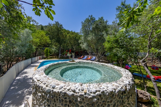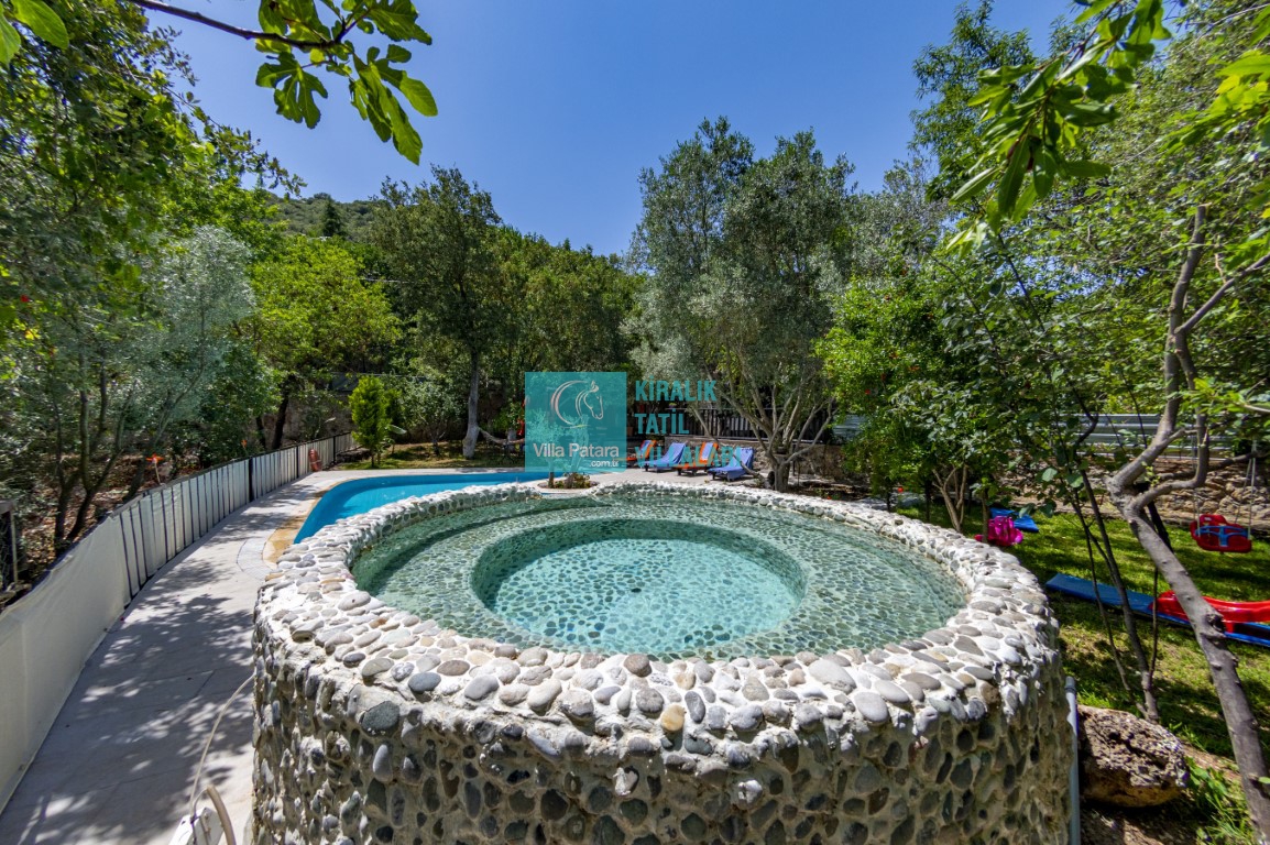 Geniş bahçesinde çocuklarınız özgürce koşabilir; onlar toprak ve havuzun keyfini sürerken siz de bahçede bulunan jakuzide dinlenebilirsiniz.