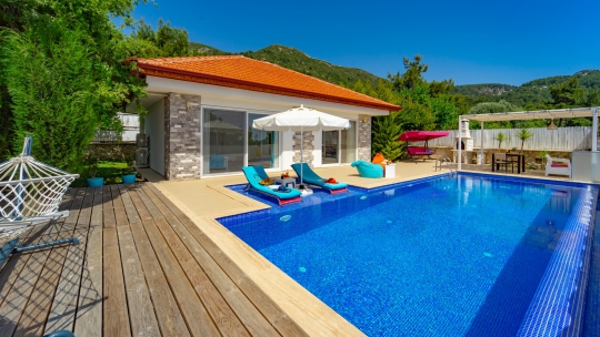 Villa Valentin, Kalkan İslamlar Köyü’ünde konumlanmış tek yatak odalı, harika bir balayı tatil villasıdır. 2 kişilik konaklama kapasitesine sahip olan villamız enfes doğa manzarasına hakimdir. Açık mutfaklı salonda oturma grubu, televizyon, uydu alıcısı, klima yer alır. Özel yüzme havuzlu olup havuzu dışarıdan görünmez. Balayı çiftleri, çekirdek aileler ve tatilini yabancı gözlerden uzakta geçirmek isteyen herkes için oldukça ideal bir yazlık evdir. Korunaklılık konsepti ilede muhafazakar çiftler için ideal bir seçenektir .