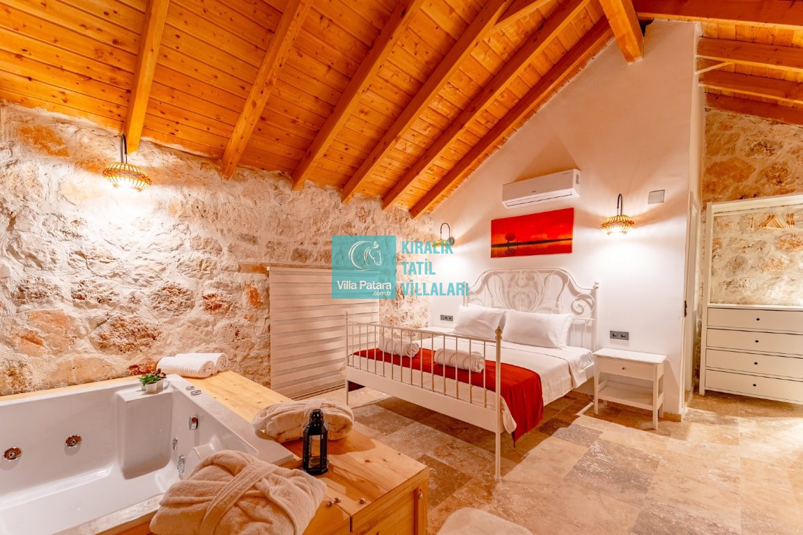 1. Yatak Odası : 1 adet çift kişilik yatak, klima, komodin, makyaj masası, elbise dolabı, jakuzi, ve banyo tuvalet bulunmaktadır.