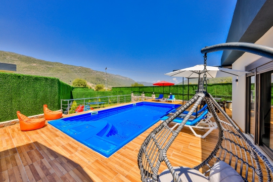 Kalkan Sarıbelen mevkisinde bulunan kiralık balayı villası, sessizliğin, huzurun hakim olduğu bir villada tatil isteyen çiftlerimiz ve ailelerimiz için oldukça uygun bir seçenektir.Muhafazakar ve balayı villaları kategorisinde yer alan villamız, 2 yatak odası ile 5 kişilik konaklama kapasitesine sahiptir. Havuzu korunaklı ve bahçesi dışarıdan görünmeyen Villa Vega Sarıbelen, mahremiyete önem veren ailelerimiz için huzur dolu bir tatil fırsatı sunuyor. Ayrıca Yatak odasında misafirlerimizin rahatlaması için 2 kişilik jakuzi konforu da sağlamaktadır