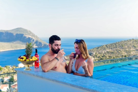 Deniz manzaralı, saunalı, ısıtmalı havuzlu
