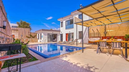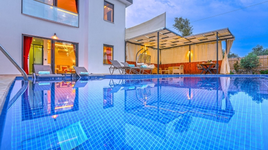 Kalkan Patara bölgesinde 2 Yatak Odalı 4 kişilik muhafazakar villamız 2021 yılında tamamlanmış olup doğa içersin de kiralık villamızdır. Özel havuzlu muhafazakar villamız balayı çiftleri için ideal seçeneklerimizden biridir. Aracınızla Patara plajına 3-4 dakikalık mesafededir. Villamız jakuzili modern bir villa olup size konforlu bir tatil sunmaktadır.