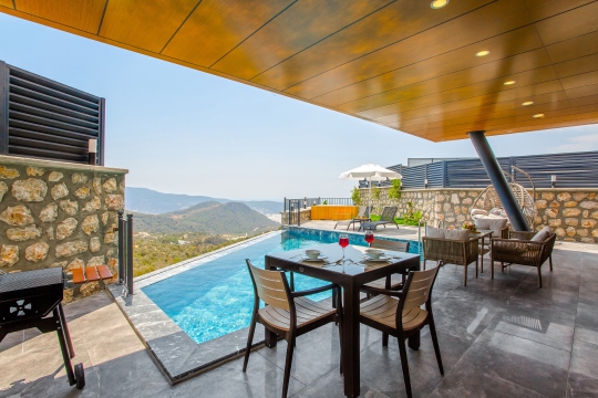 Villa Visa 4, Kalkan'ın Üzümlü mevkiinde yer almaktadır. 1 yatak odası ile 2 kişilik konaklama imkanı sağlar. Özel havuzu ile sevdiklerinizle keyifli bir tatil geçirebilir; dış mekandaki jakuzi ile yılın yorgunluğunu üzerinizden atabilirsiniz. Kapalı havuzu sayesinde 4 mevsim havuza girme fırsatı sağlar. Balayı çiftleri için uygundur.