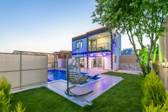 Kalkan Çavdır mevkisinde bulunan kiralık balayı villası, sessiz sakin bir konumda tatil isteyen ailelerimiz için oldukça uygun bir seçenektir. Muhafazakar villalar ve balayı villaları kategorisinde yer alan villamız, 2 yatak odası ile 4 kişilik konaklama kapasitesine sahiptir. Havuzu korunaklı ve bahçesi dışarıdan görünmeyen Villa Vivaldi, mahremiyete önem veren ailelerimiz için huzur dolu bir tatil fırsatı sunuyor. Ayrıca yatak odasında misafirlerimizin rahatlaması için jakuzi konforu da sağlamaktadır.