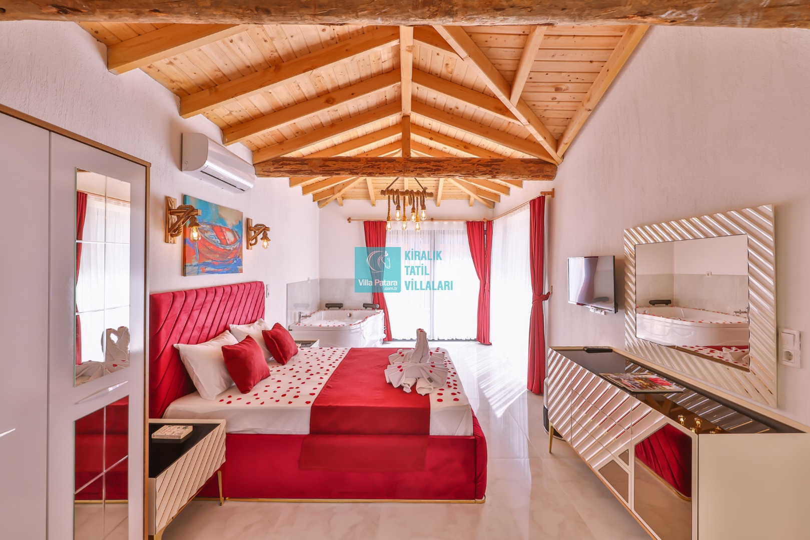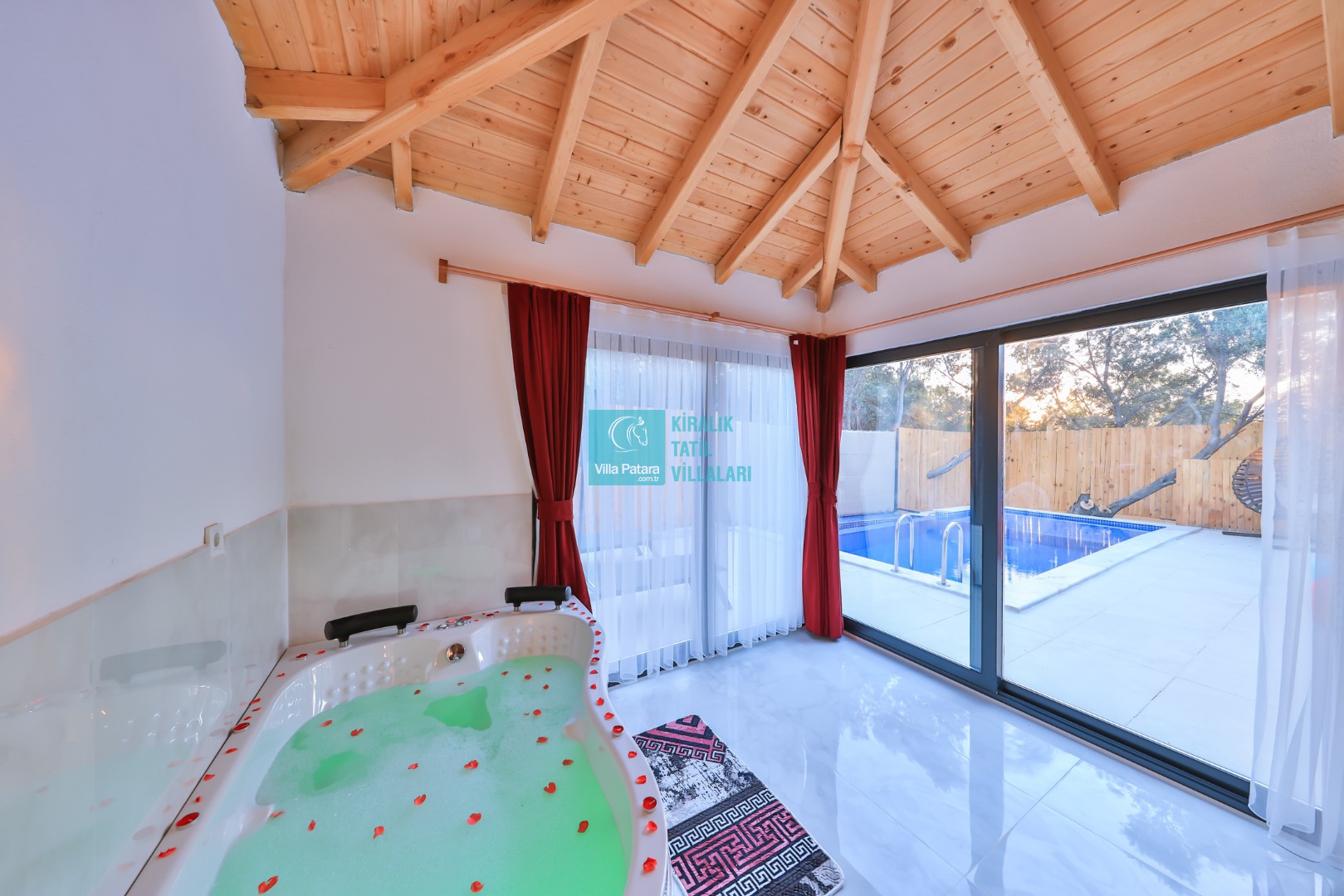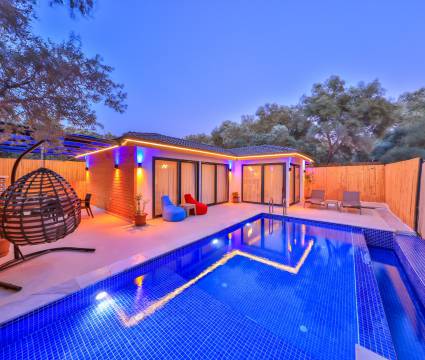 Kalkan Patara mevkisinde bulunan kiralık balayı villası, sessizliğin, huzurun hakim olduğu bir villada tatil isteyen çiftlerimiz için oldukça uygun bir seçenektir. Muhafazakar villalar ve balayı villaları kategorisinde yer alan villamız, 1 yatak odası ile 2 kişilik konaklama kapasitesine sahiptir. Havuzu korunaklı ve bahçesi dışarıdan görünmeyen Villa Yağız, mahremiyete önem veren çiftlerimiz için huzur dolu bir tatil fırsatı sunuyor. Ayrıca yatak odasında misafirlerimizin rahatlaması için 2 kişilik jakuzi konforu da sağlamaktadır.