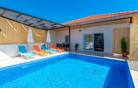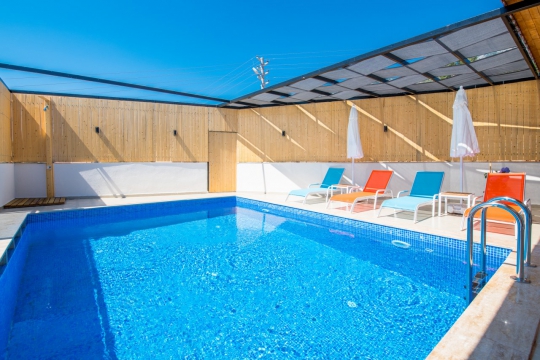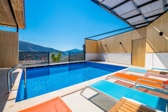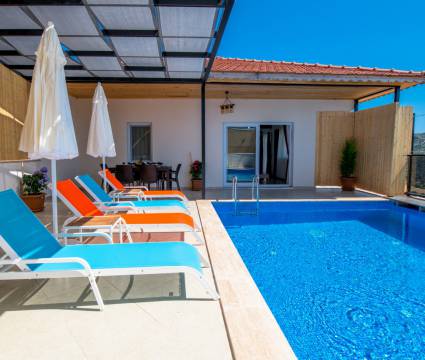 Kalkan Ulugöl bölgesinde bulunmaktadır. Yer aldığı konum itibari ile merkeze yakın villa seçenekleri arasındadır. 2 yatak odalı olup toplamda 4 kişi konaklama kapasitesine sahiptir. Çekirdek aileler veya yeni evli balayı çiftlerinin tercih edebileceği bir villa seçeneğidir. Havuz alanı korunaklı olup muhafazakar ailelere uygundur. Jakuzili bir villadır. Bu sebeple tatilinizde yeni bir deneyim kazanabilirsiniz.