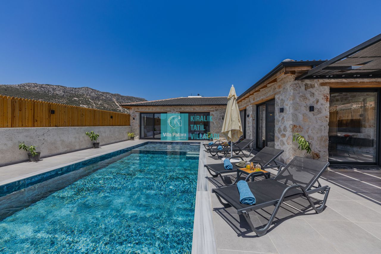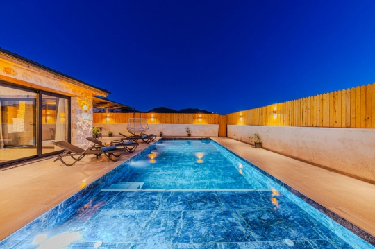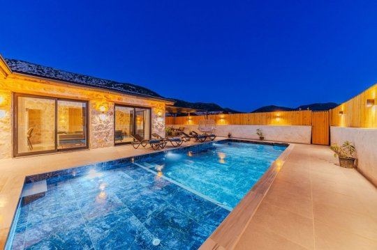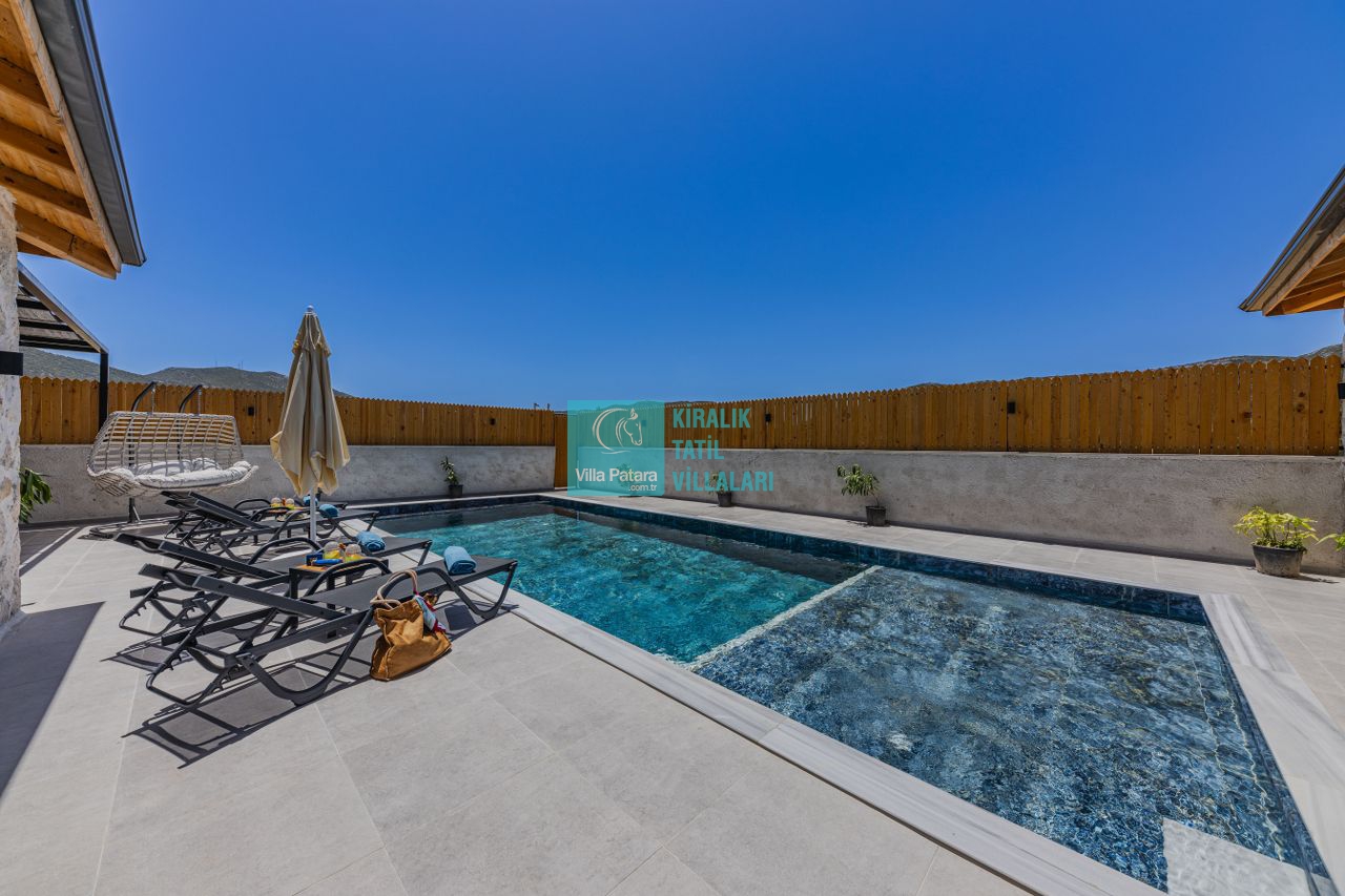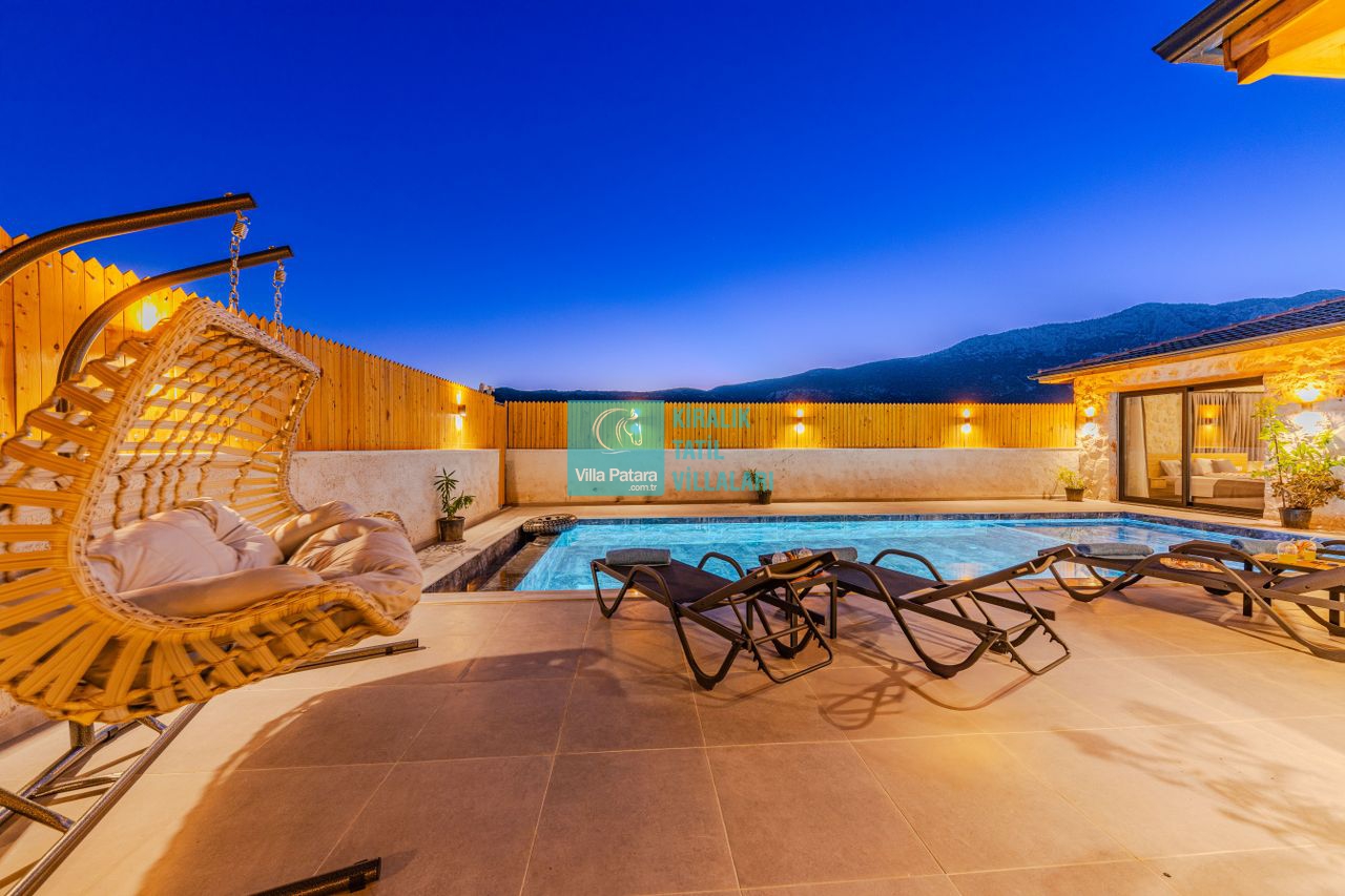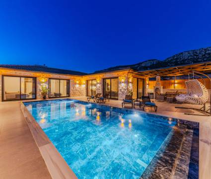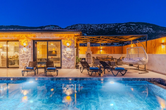 Kalkan bölgesinin Bezirgan mevkisinde yer alan tatil villamız. Bulunduğu konum itibari ile doğa manzaralı seçenekler arasında olup Kalkan şehir merkezine özel araç ile ortalama max 20 dakika mesafededir.3 yatak odası olup toplamda 6 kişi konaklama kapasitesine sahiptir. Korunaklı özel havuzu ile muhafazakar ailelerimiz için oldukça uygun bir villamızdır. Villamızda aynı zamanda jakuzi ve havuz alanında salıncak,çocuk havuzu bulunmaktadır.Villamızın geniş havuz alanı,çocuklu aileler içinde için oldukça avantajlı bir villa haline gelecektir. Balayı Çiftlerimizinde gözde villası haline gelmiştir.