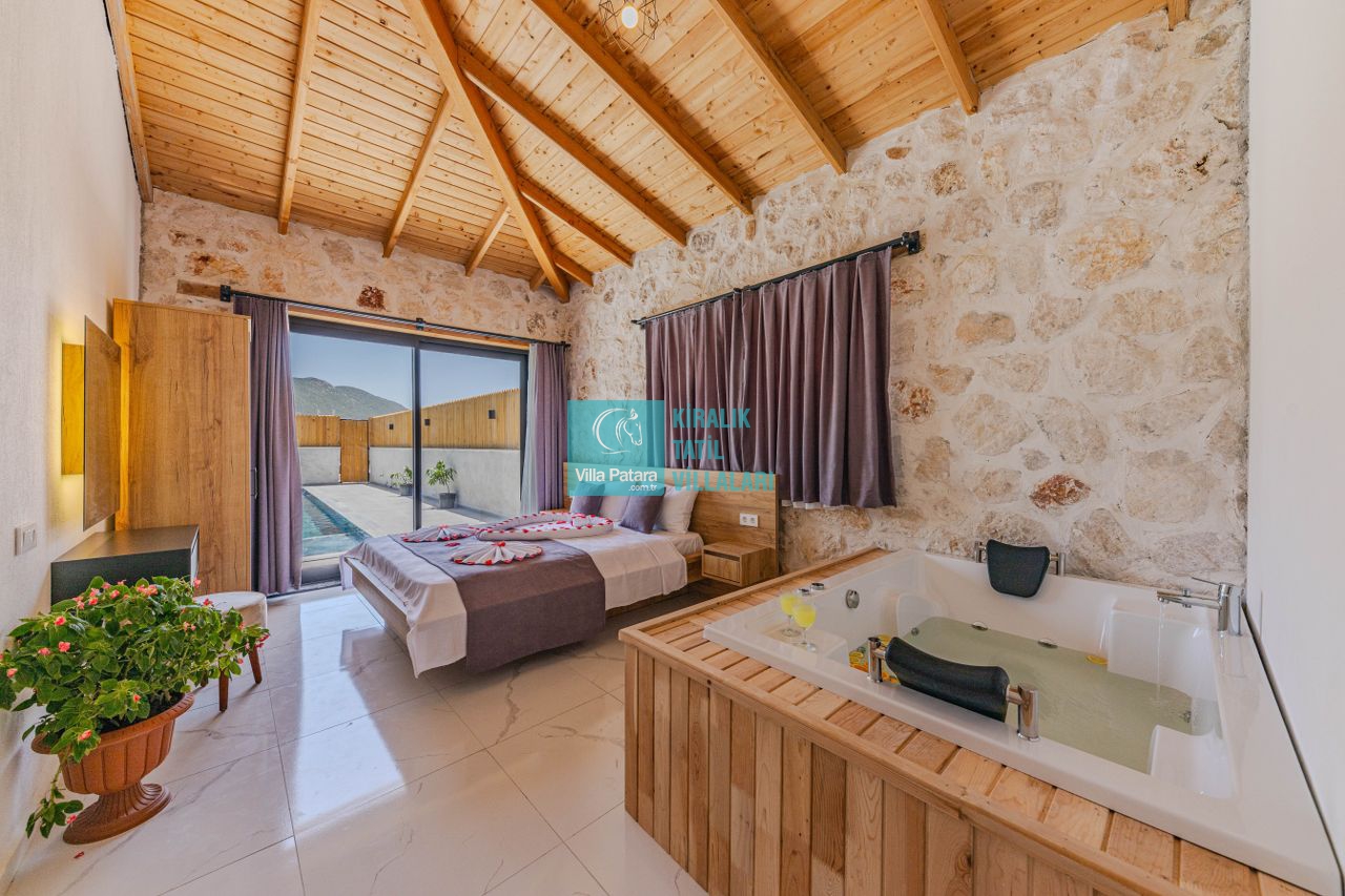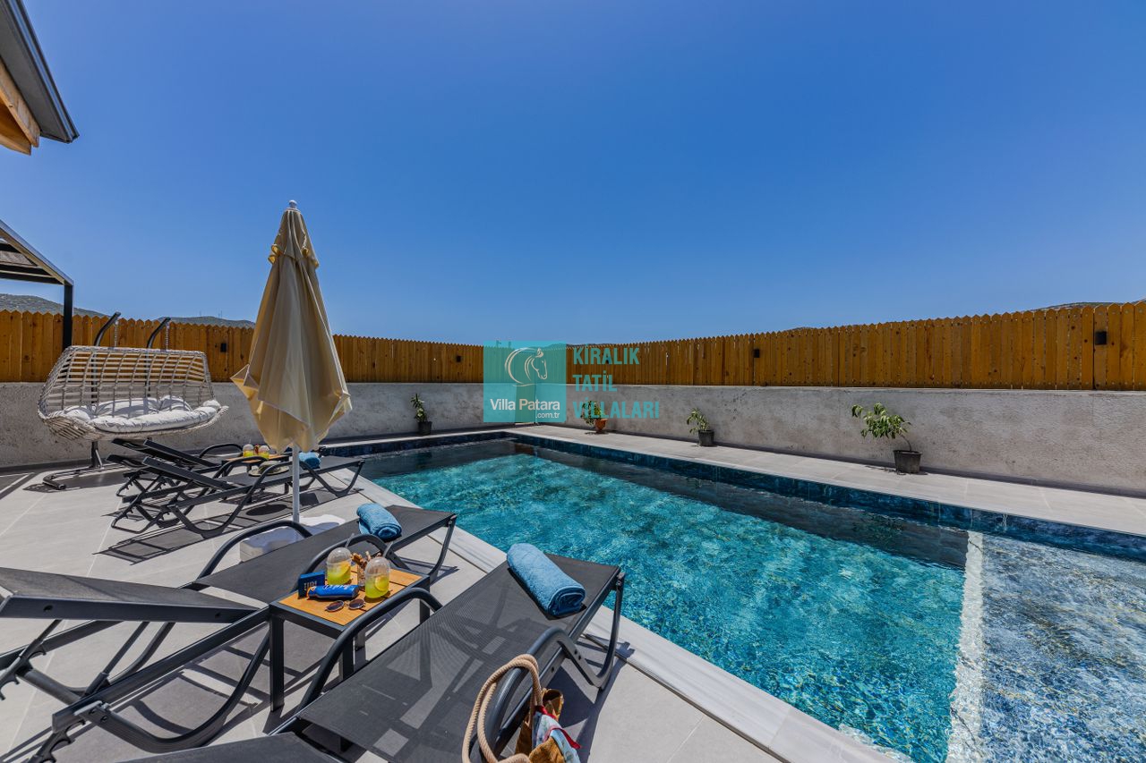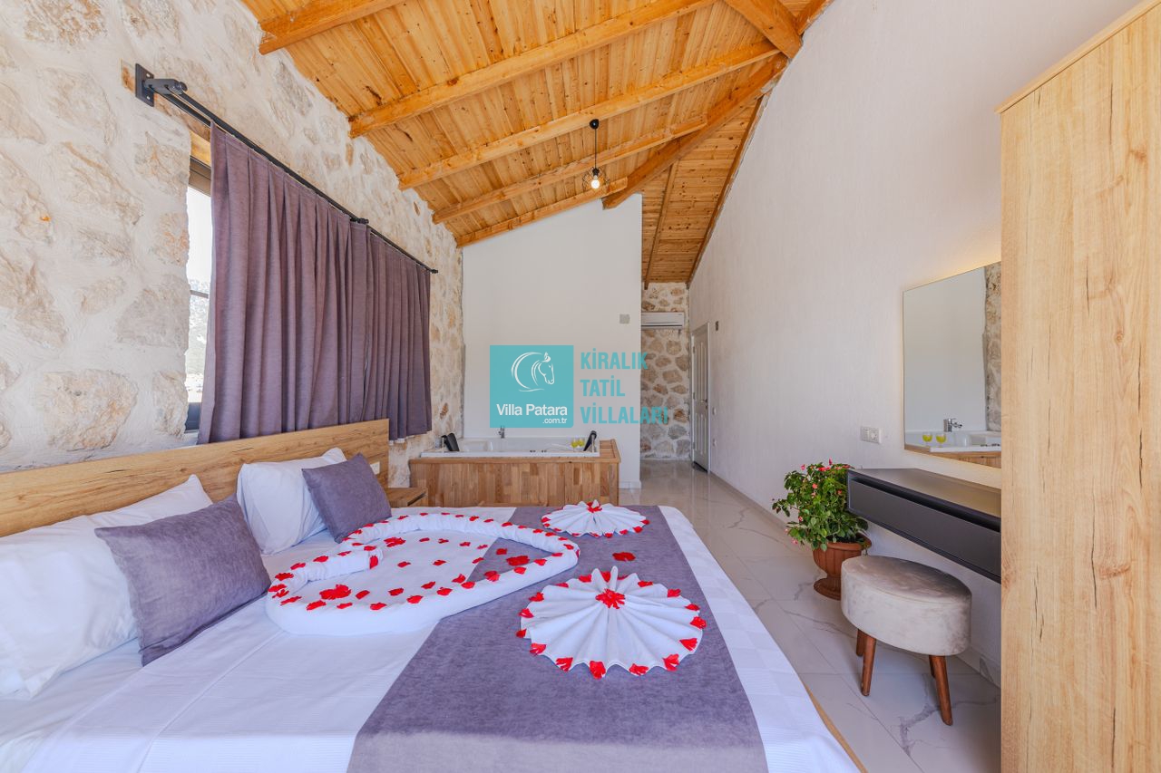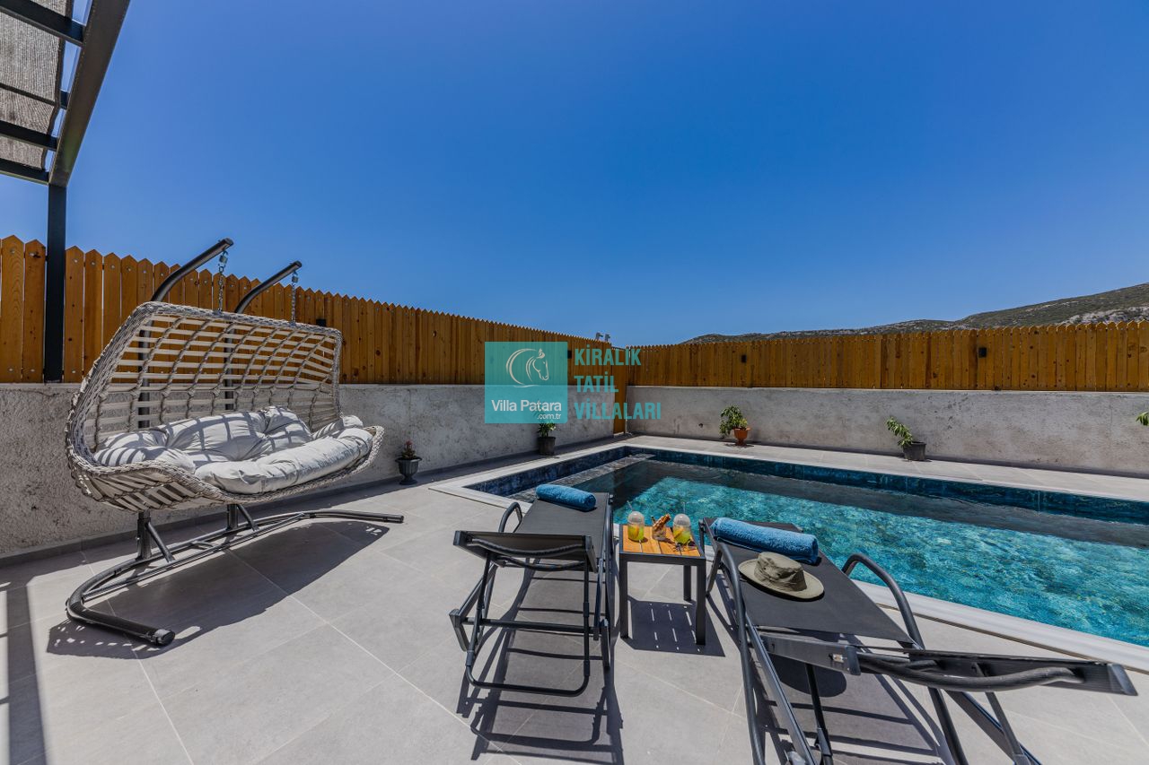 Kalkan bölgesinin Bezirgan mevkisinde yer alan tatil villamız. Bulunduğu konum itibari ile doğa manzaralı seçenekler arasında olup Kalkan şehir merkezine özel araç ile ortalama max 20 dakika mesafededir.3 yatak odası olup toplamda 6 kişi konaklama kapasitesine sahiptir. Korunaklı özel havuzu ile muhafazakar ailelerimiz için oldukça uygun bir villamızdır. Villamızda aynı zamanda jakuzi ve havuz alanında salıncak,çocuk havuzu bulunmaktadır.Villamızın geniş havuz alanı,çocuklu aileler içinde için oldukça avantajlı bir villa haline gelecektir. Balayı Çiftlerimizinde gözde villası haline gelmiştir.