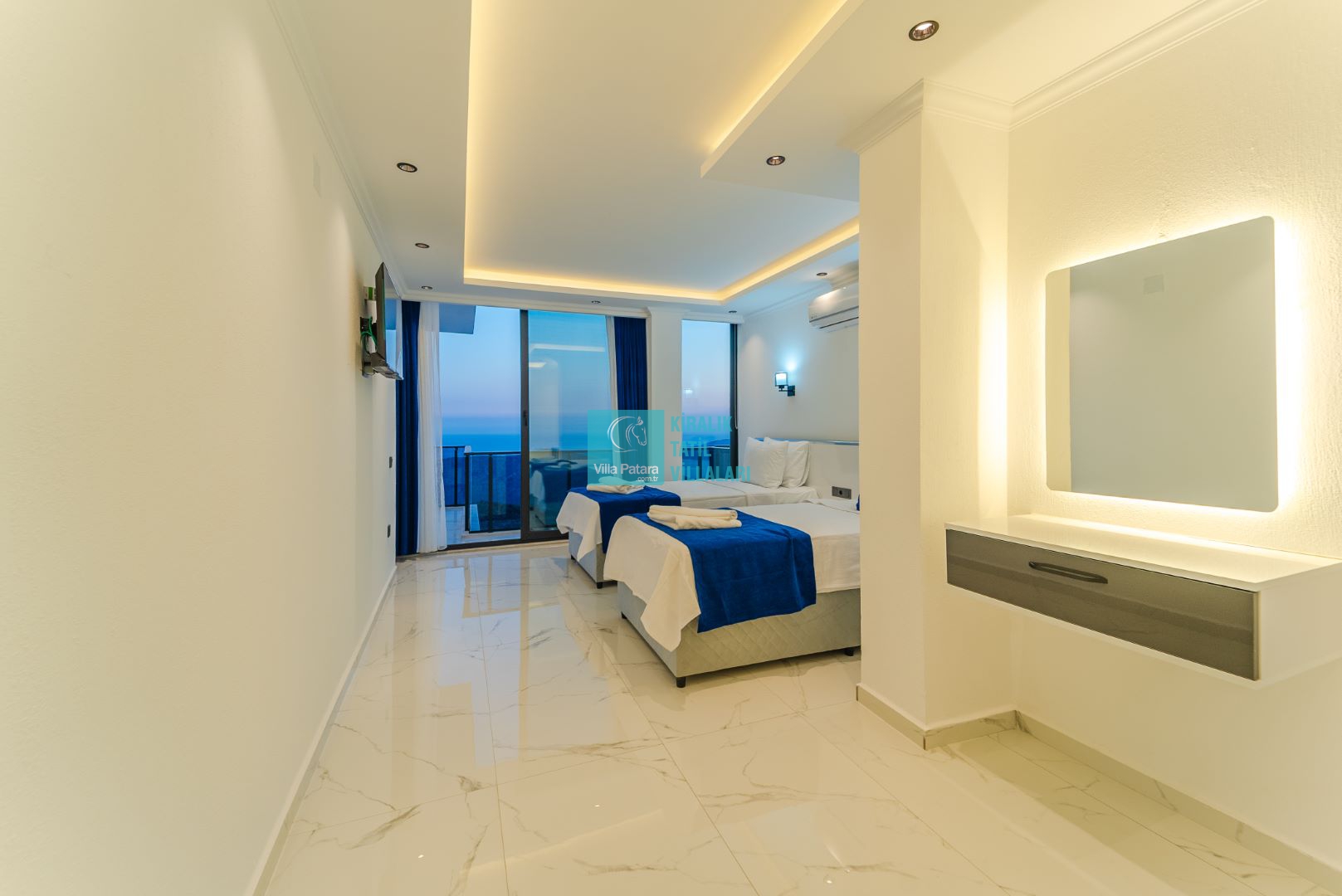 Salon : Muhteşem deniz manzaralı salon içerisinde konforlu oturma grubu, TV, DVD oynatıcı, klima yer almaktadır. Salondan havuz terasına geçiş vardır.