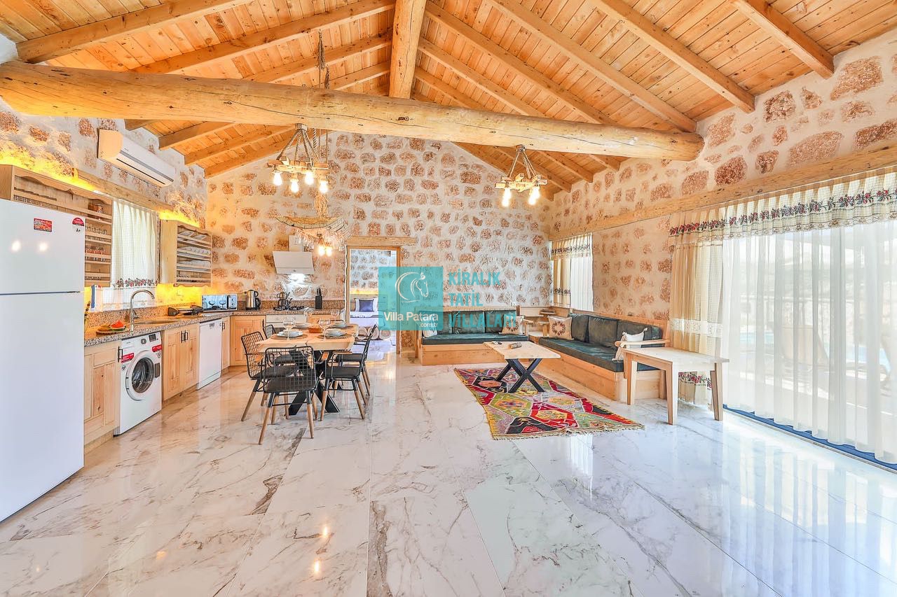 Salon: Villa salonunda konforlu oturma grubu, klima, TV, internet, uydu alıcı, yemek masası, sehpa bulunmaktadır.