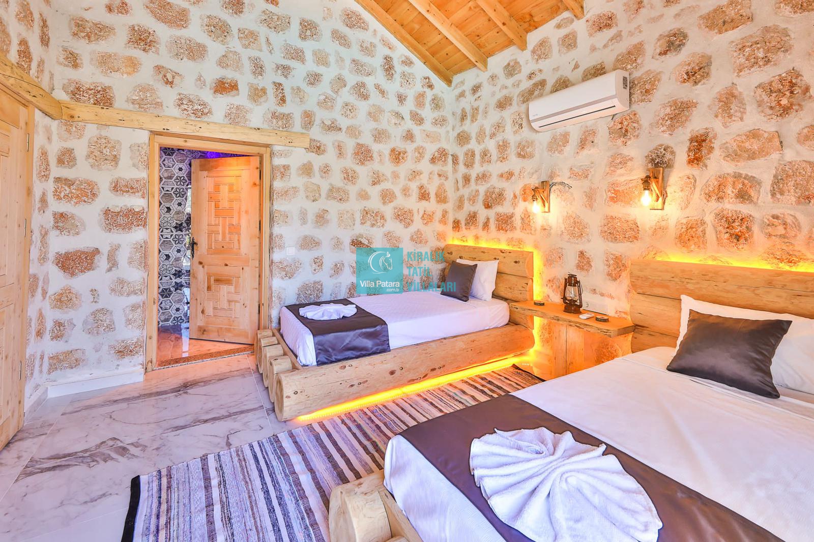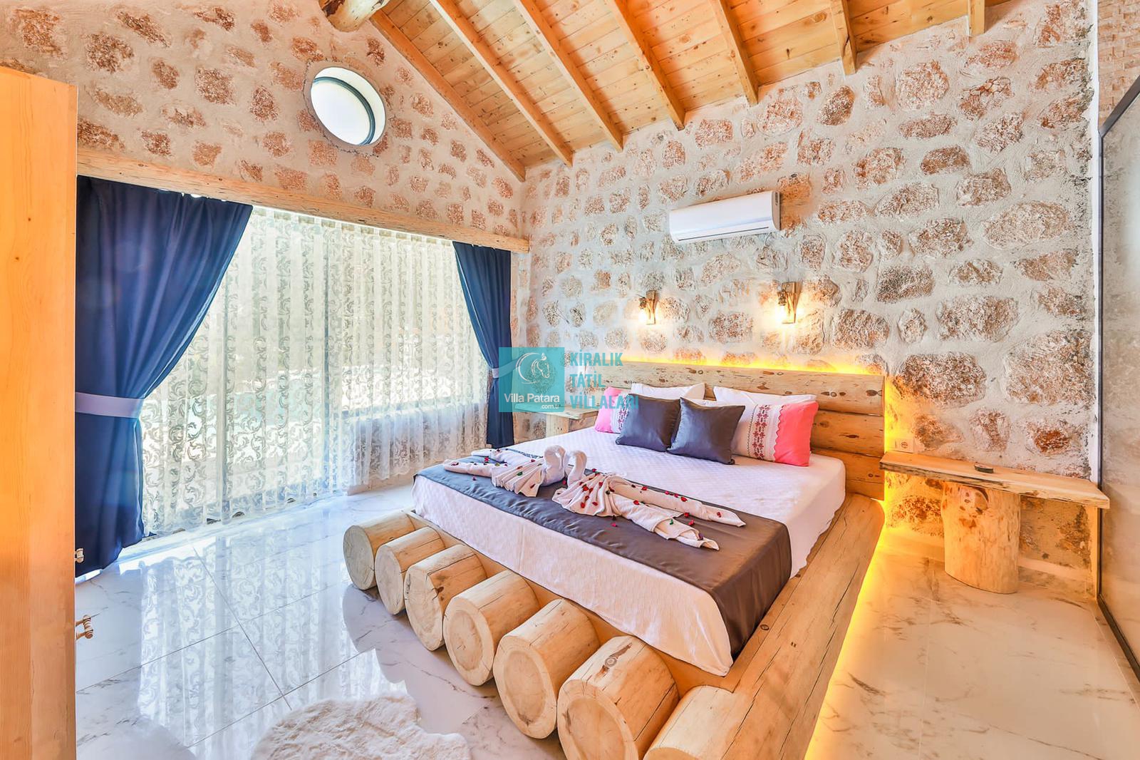 1. Yatak Odası: Çift kişilik yatak, klima, jakuzi, TV, komodin, elbise dolabı, makyaj masası, banyo ve tuvalet bulunmaktadır.