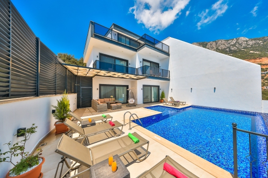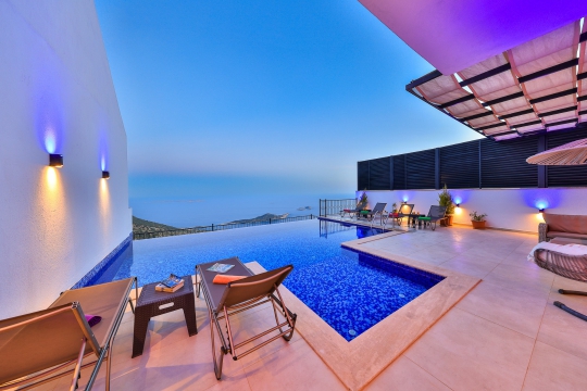 Açıklama: Kalkan Kördere mevkinde konumlanan Villa Zara, 3 yatak odalı olup 6 kişilik konaklama kapasitesine sahiptir. Villamızın ebeveyn odasında jakuzi bulunmakta olup çekirdek aileler ve geniş aileler için özenle tasarlanmıştır. Eşsiz bir deniz manzarasına sahip olan villamız da sonsuzluk havuzuna bulunmakta olup havuz başı korunaklıdır. Küçük misafirlerimiz için düşünülmüş çocuk havuzu ve bebek park yatağı da bulunmaktadır. Rahatlığın ve konforun ön planda olduğu villamızda tatilliniz boyunca ihtiyaç duyabileceğiniz tüm ekipmanlar mevcuttur.