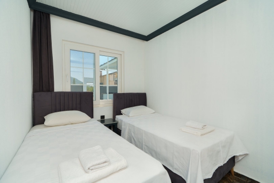 2.Yatak Odası : 2 adet tek kişilik yatak, makyaj masası, elbise dolabı, komadin, oratak kullanım banyo ve tuvalet bulunmaktadır.