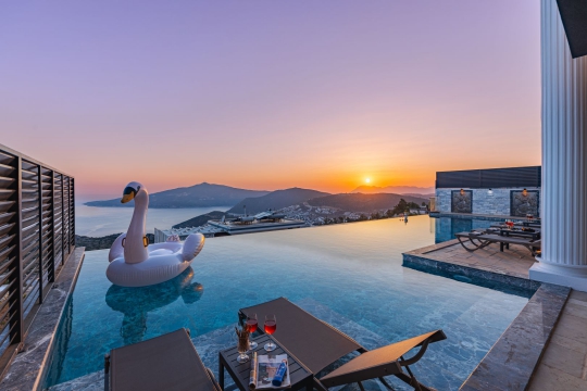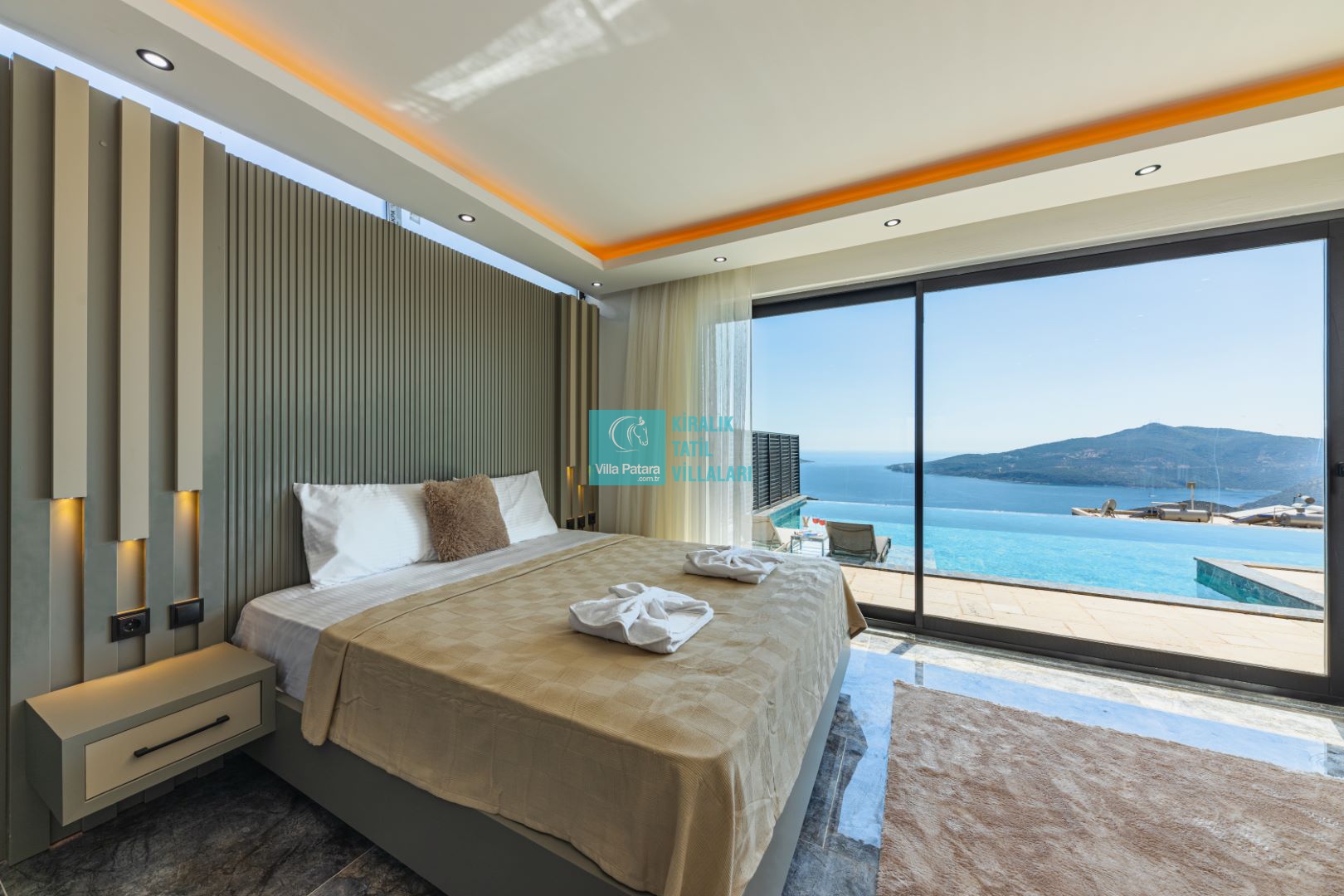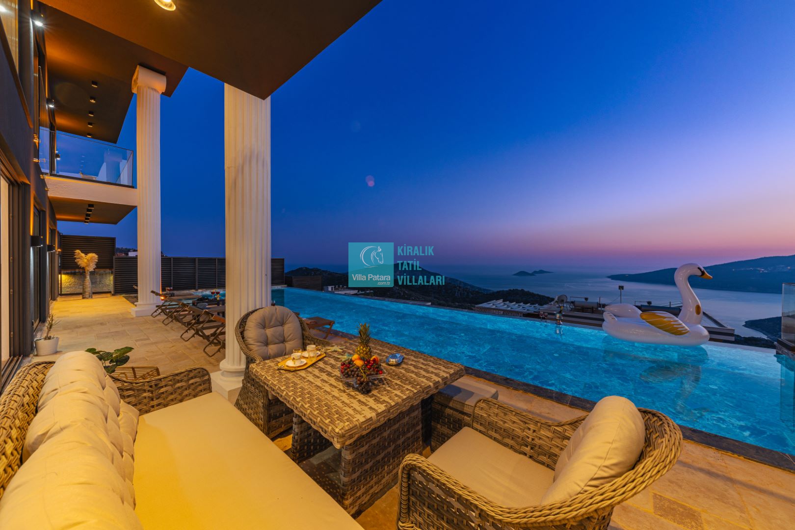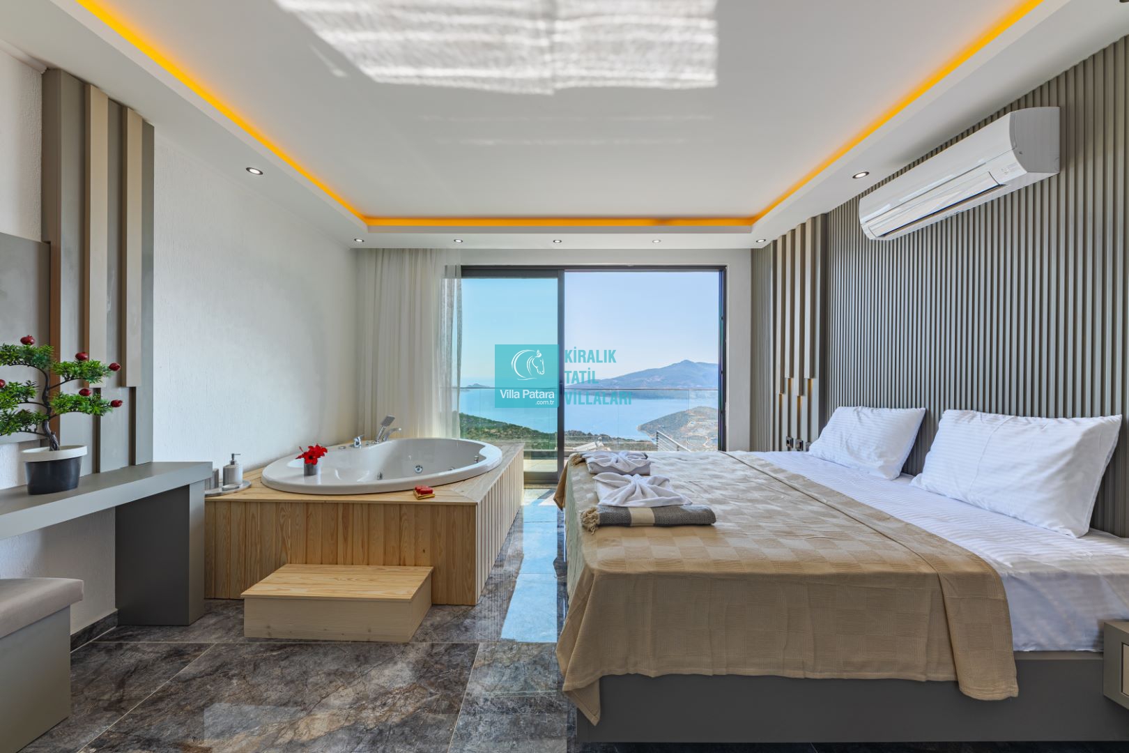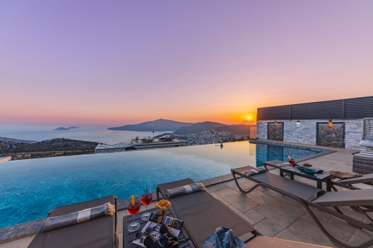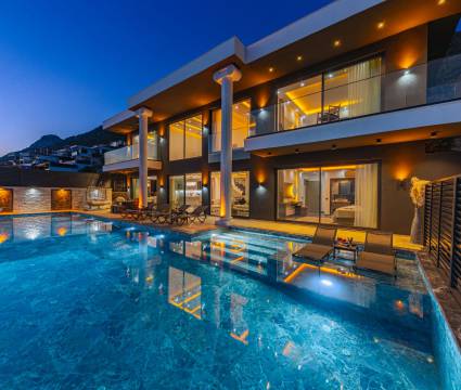 Villa Zek, Kalkan Kördere mevkiinde konumlanmakta olan eşsiz deniz ve doğa manzarasına hakim kiralık villalarımız arasında yer almaktadır. Modern ve konforlu bir şekilde dizayn edilen yazlık villamızda 4 adet yatak odası bulunmakta olup, 8 kişiye konaklama imkanı sağlamaktadır. Kış aylarında tatil planı yapan misafirlerimiz için jakuzili kapalı ısıtma havuzu, hamam ve sauna yer almaktadır. Havuz ve havuz terası korunaklı hale getirilen kiralık villamızı muhafazakar aileler ve balayı çiftleri rahatlıkla tercih edebilirler. Tatilinizi eğlenceli hale getirebilmek adına langırt, masa tenisi ve mini bar alanı yer almaktadır. Aynı zamanda yüzme havuzunun yanında sığ havuz bulunmaktadır. Her bir detayın en ince ayrıntısına kadar düşünüldüğü yazlık villamızda tüm yorgunluğunuzu giderebileceğiniz ve sevdiklerinizle birlikte muhteşem deniz manzarasına karşı keyif yapabileceğiniz bir yazlık villada tatil için Villa Zek'i tercih edebilirsiniz.