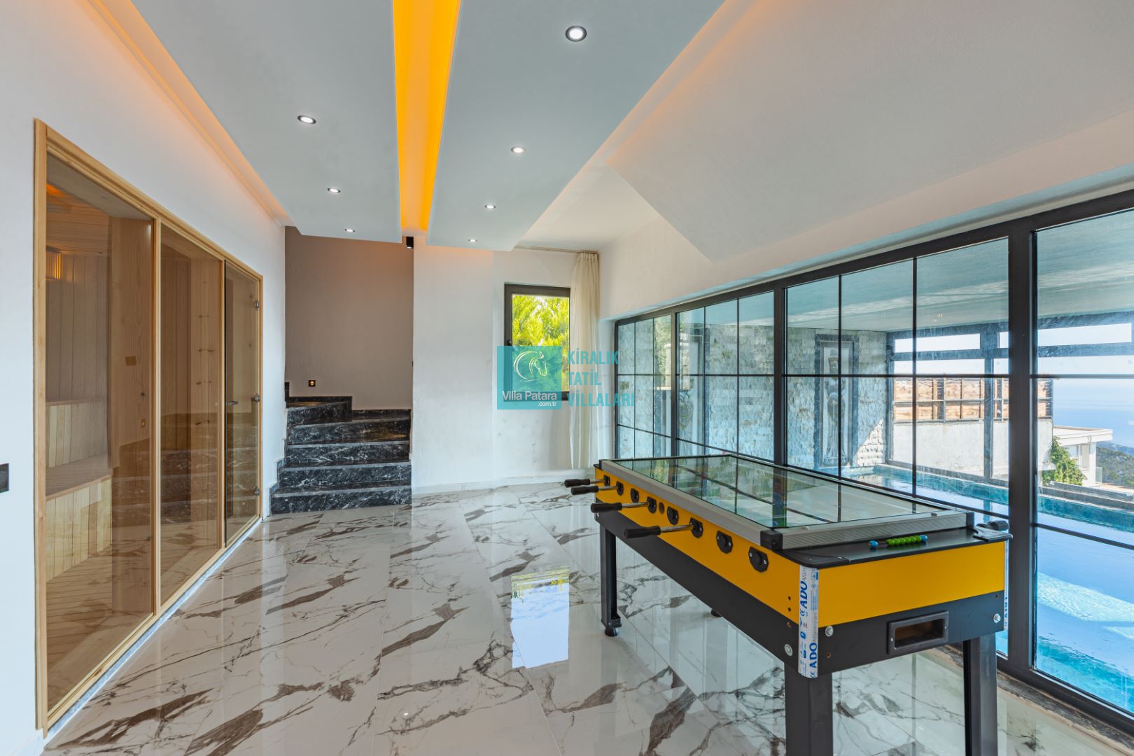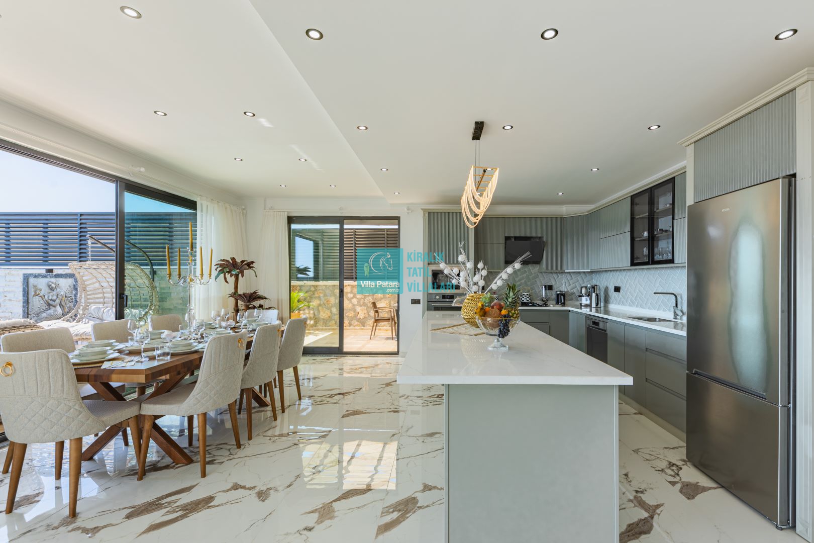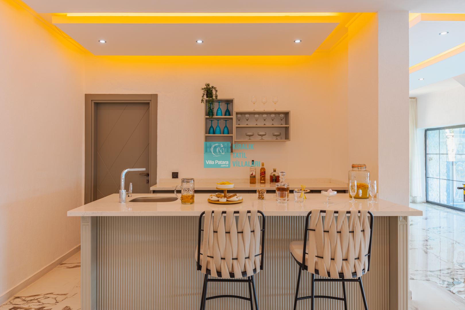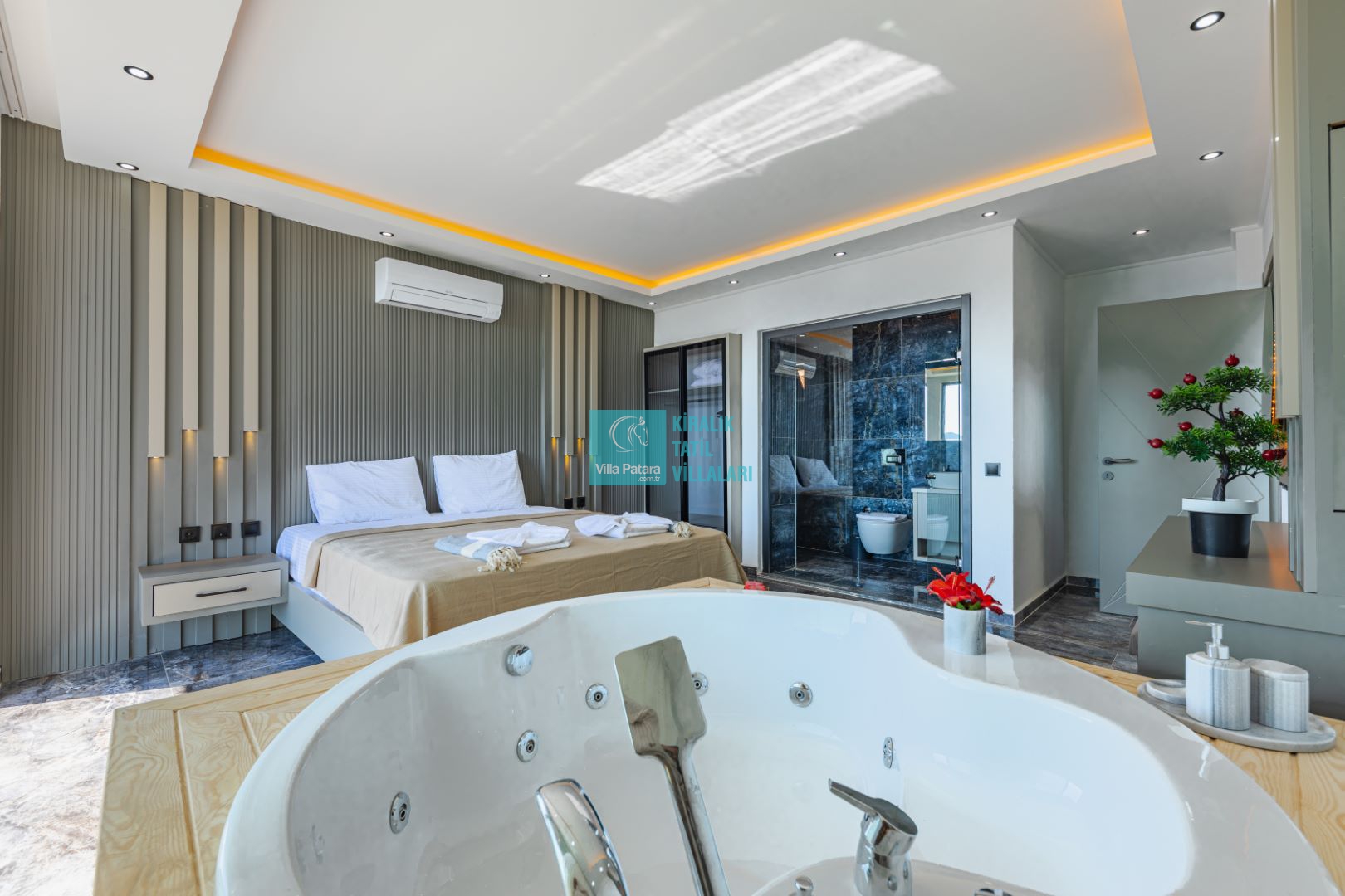 Villa Zek, Kalkan Kördere mevkiinde konumlanmakta olan eşsiz deniz ve doğa manzarasına hakim kiralık villalarımız arasında yer almaktadır. Modern ve konforlu bir şekilde dizayn edilen yazlık villamızda 4 adet yatak odası bulunmakta olup, 8 kişiye konaklama imkanı sağlamaktadır. Kış aylarında tatil planı yapan misafirlerimiz için jakuzili kapalı ısıtma havuzu, hamam ve sauna yer almaktadır. Havuz ve havuz terası korunaklı hale getirilen kiralık villamızı muhafazakar aileler ve balayı çiftleri rahatlıkla tercih edebilirler. Tatilinizi eğlenceli hale getirebilmek adına langırt, masa tenisi ve mini bar alanı yer almaktadır. Aynı zamanda yüzme havuzunun yanında sığ havuz bulunmaktadır. Her bir detayın en ince ayrıntısına kadar düşünüldüğü yazlık villamızda tüm yorgunluğunuzu giderebileceğiniz ve sevdiklerinizle birlikte muhteşem deniz manzarasına karşı keyif yapabileceğiniz bir yazlık villada tatil için Villa Zek'i tercih edebilirsiniz.