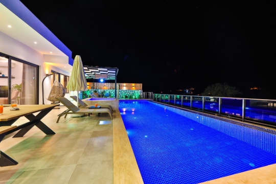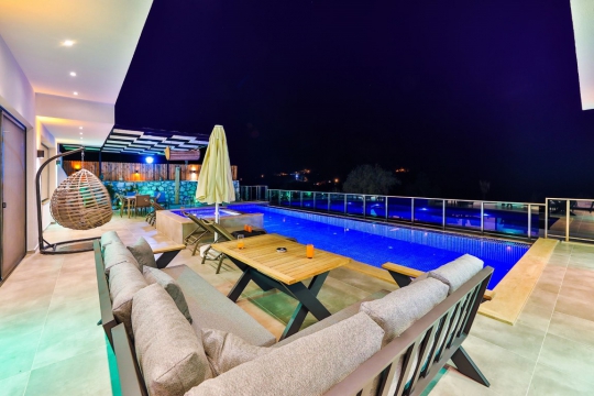 Kalkan Hacıoğlan mevkiisinde konumlanmış kiralık balayı villası yemyeşil bahçesi ve çocuklar için kurulmuş oyun parkıyla betonlaşmış şehir hayatından bıkmış misafirlerimiz için harika bir alternatiftir. Dizaynı yatak odası tasarımı ve geniş ferah oluşu ile dikkat çeken villamız muhafazakar villalar kategorisinde yer almaktatıdir. 3 yatak odası ile 6 kişiye kadar konaklama imkanını sizlere sunmaktadır. Ebeveyn odasındaki iki kişilik jakuzisi de misafirlerimize ekstra rahatlama imkanı sunuyor.Havuzu korunaklı (Havuzun dışarıdan gözükmediği anlamına gelir) özelliği ile mahremiyete önem veren misafirlerimiz muhteşem bir doğada tatil imkanı sunmaktadır.